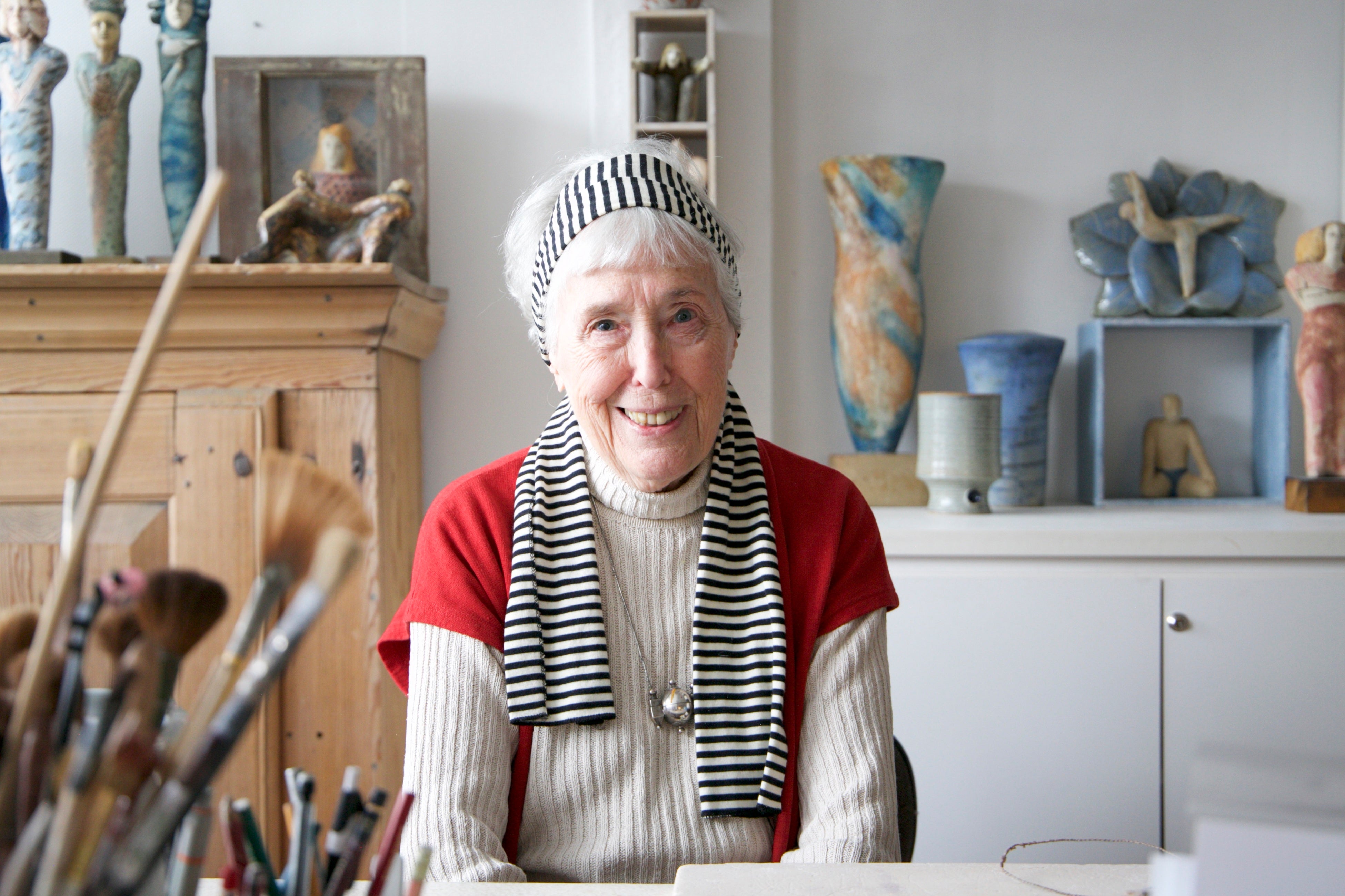 1931年9月9日、スウェーデン南部に生まれる。ヨーテボリ大学芸術学部デザイン工芸校に学んだ後、スウェーデンの陶磁器メーカー、グスタフスベリのアートディレクターであったスティグ・リンドベリに請われグスタフスベリ社に入社。同社の黄金期を支える中心的なデザイナーとなる。1952年、画家のグンナル・ラーソンと結婚。1980年にフリーランスとなり、以後、数多くのクライアントと仕事をする。2000年代より株式会社トンカチ(日本)とのコラボレーションがスタートし世界的な再ブレークの契機となる。2022年スウェーデンの芸術と工芸を刷新し、豊かにした長年の優れた仕事に対して政府から勲章を授与される。2024年3月11日没。
