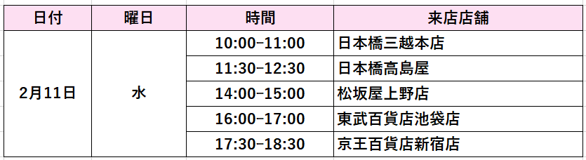 ※ 感染症対策等、各百貨店の都合により、上記日時は変更になる場合があります。