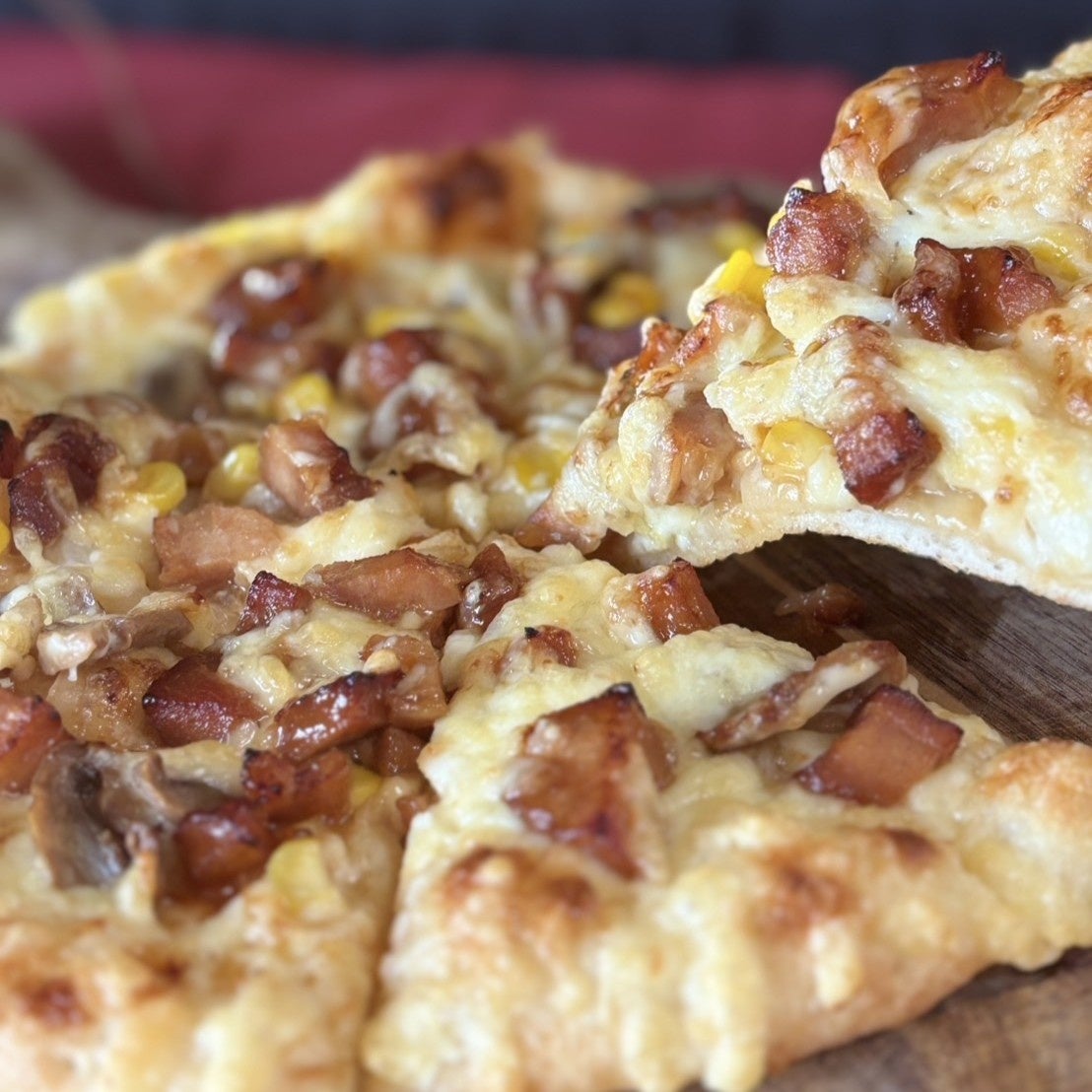 トッピング:特製照焼ソース(マヨネーズ使用)/オニオン/マッシュルーム/コーン/照焼チキン/マヨネーズ/ミックスチーズ