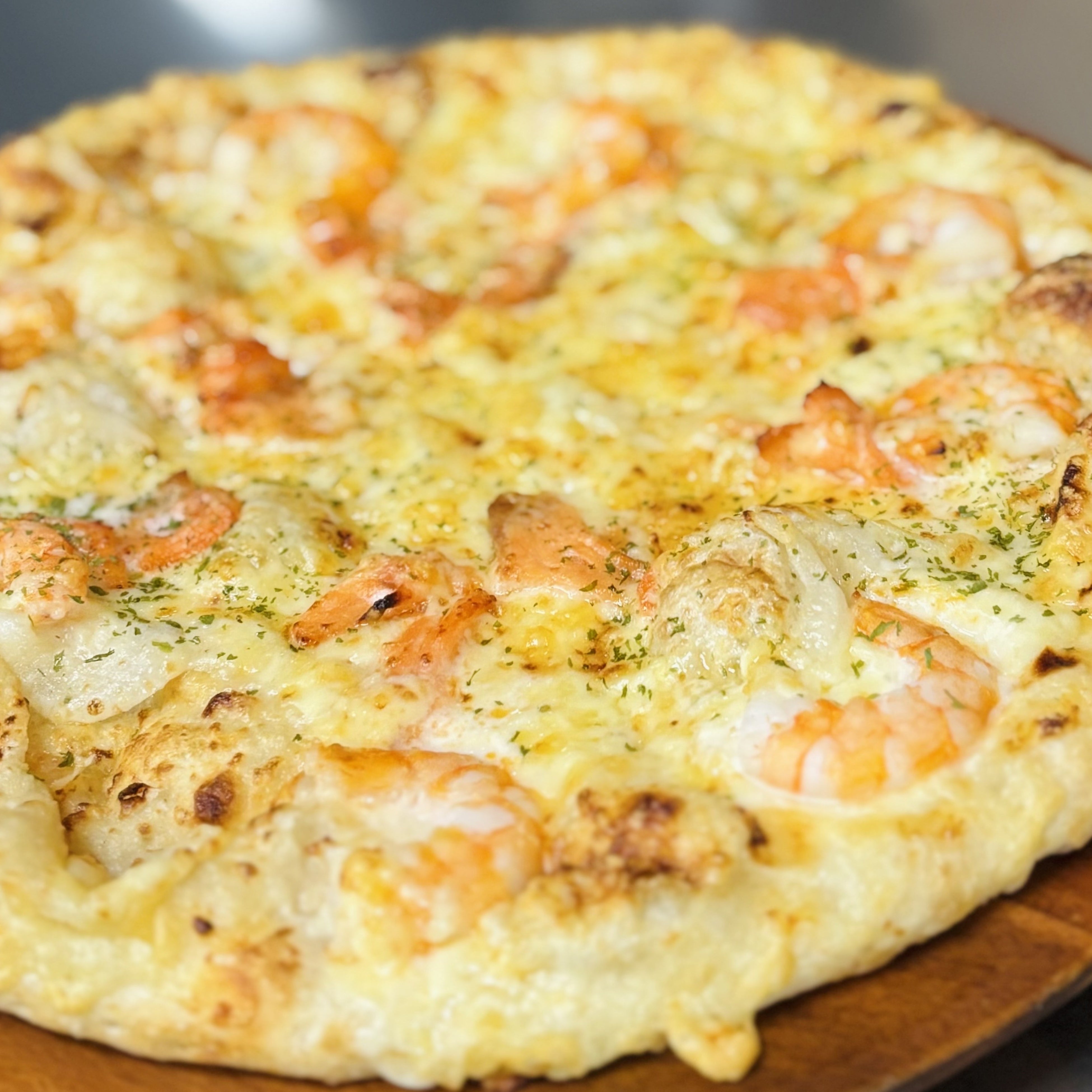 トッピング:特製ホワイトソース/オニオン/サーモン/エビ/マヨネーズ/ホワイトペッパー/ミックスチーズ
