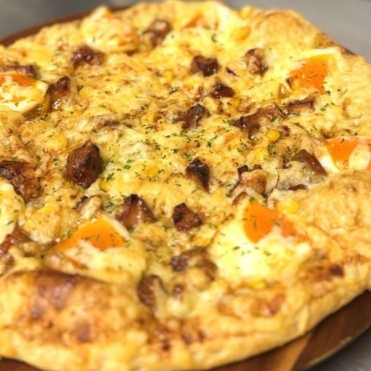 トッピング:特製照焼ソース(マヨネーズ使用)/オニオン/マッシュルーム/コーン/照焼チキン/マヨネーズ/ミックスチーズ