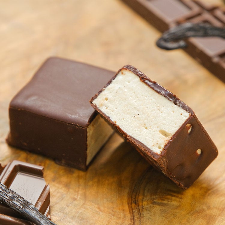 本製品は、ぱりっと割れる繊細なチョコレートの中から、もっちり軽いマシュマロが顔を出す、驚きのある食感が魅力のスイーツです。