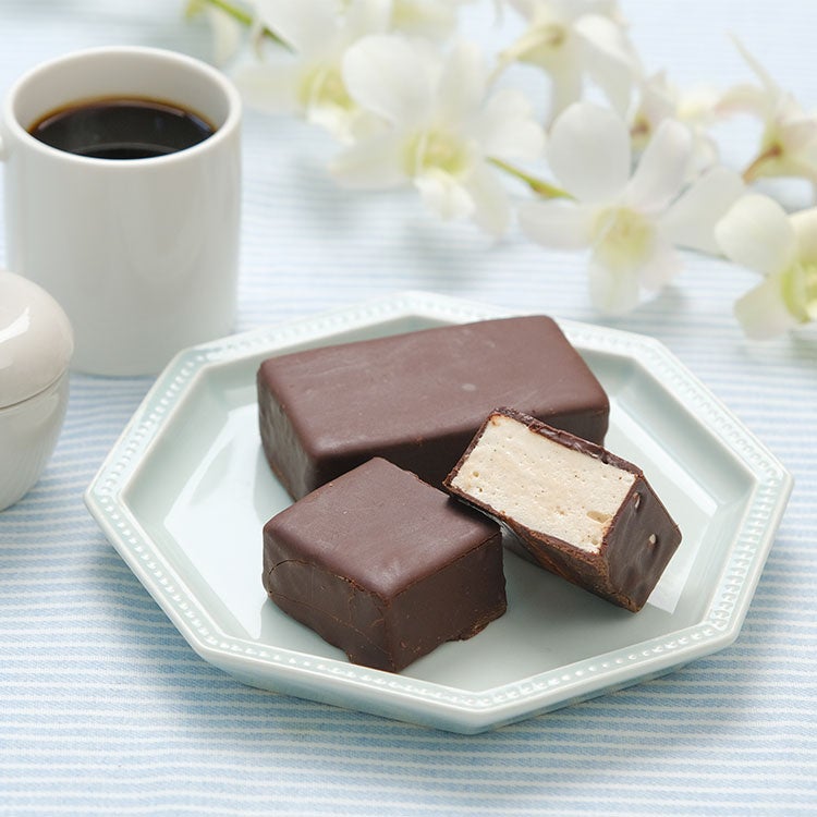 本製品は、ぱりっと割れる繊細なチョコレートの中から、もっちり軽いマシュマロが顔を出す、驚きのある食感が魅力のスイーツです。