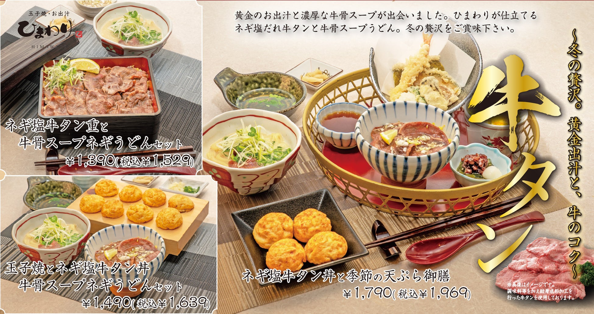 あわせて、「牛タンフェア」を同時開催しています。「牛タンフェア」は注文毎に焼き上げるやわらか牛タンを御重に。特製お出汁と牛骨スープを合わせた「牛骨スープネギうどん」等をご用意。今回の「デジタルお食事券」をはじめ、デジタル技術を活用したブランド体験のデジタル化取り組み(DX)を進めております。「玉子焼・お出汁ひまわり」は、お客様の暮らしを彩り、普段の生活の中で小さな幸せを感じていただけるよう取り組んでまいります。