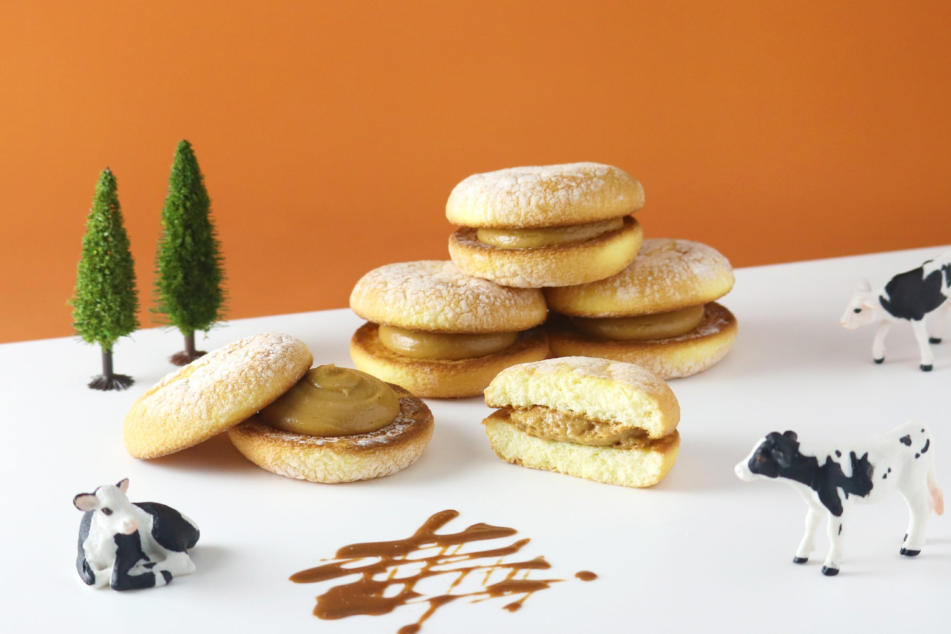 定番のフレーバーに加え、艶やかで粒感のある餡子と朝霧高原ならではのすっきりとしたホイップバターをサンドした〈あんバター〉、キャラメルソースと雪塩を合わせた、あと引く美味しさの塩キャラメルクリームをサンドした<キャラメル>、チョコチップの食感が楽しい、とろける生チョコクリームをサンドした期間限定商品の<生チョコクリーム>の4種類を展開いたします。