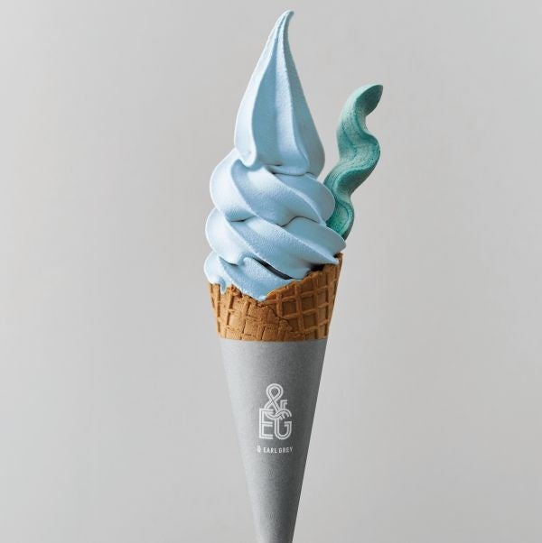 鮮やかな青は天然のアントシアニンの色。生乳から作った濃厚なミルク味と天然ベルガモットの