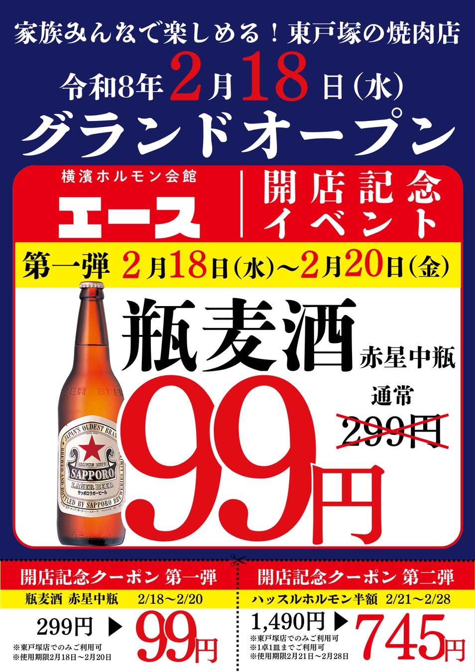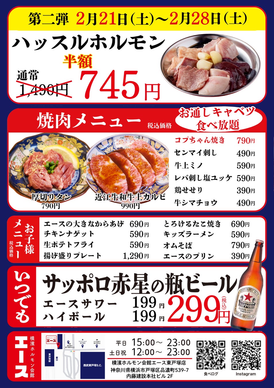 「横濱ホルモン会館エース 東戸塚店」 をグランドオープンいたします。