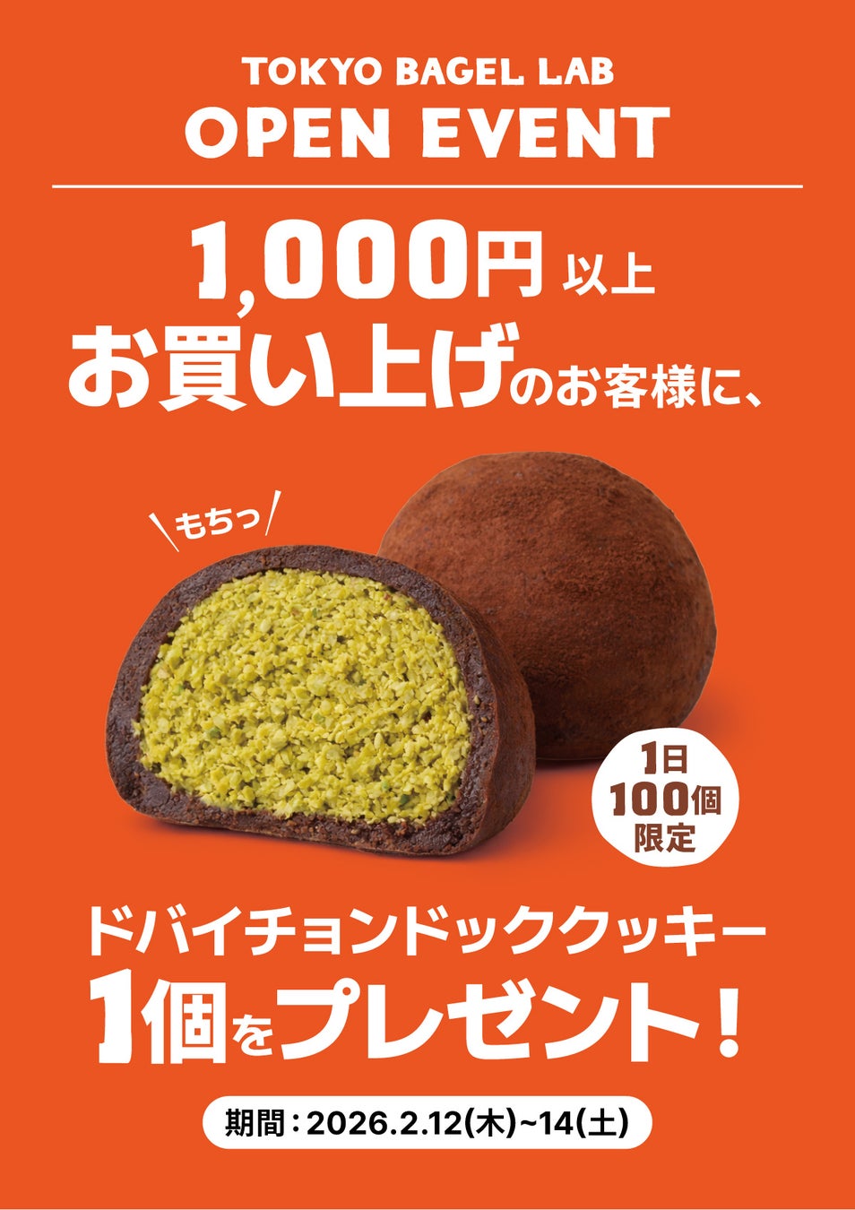 開催期間:2026年2月12日(金)〜2月14日(日)3日間期間中、店内で1,000円以上ご購入のお客様に🎁 ドバイチョンドゥククッキー(通常価格530円)を1個プレゼント!