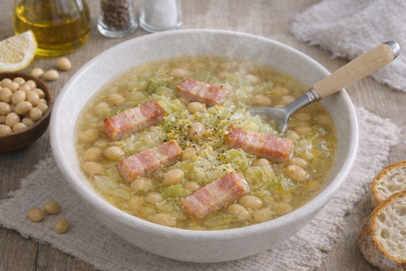 神埼店で知る人ぞ知る天然地下水と、 梅の花グループゆかりの深い4種の国産大豆【佐賀県産フクユタカ、北海道産ゆきぴりか、北海道産トヨマサリ、北海道産ユキシズカ】、 さらに季節のお野菜を加えた特製スープ。