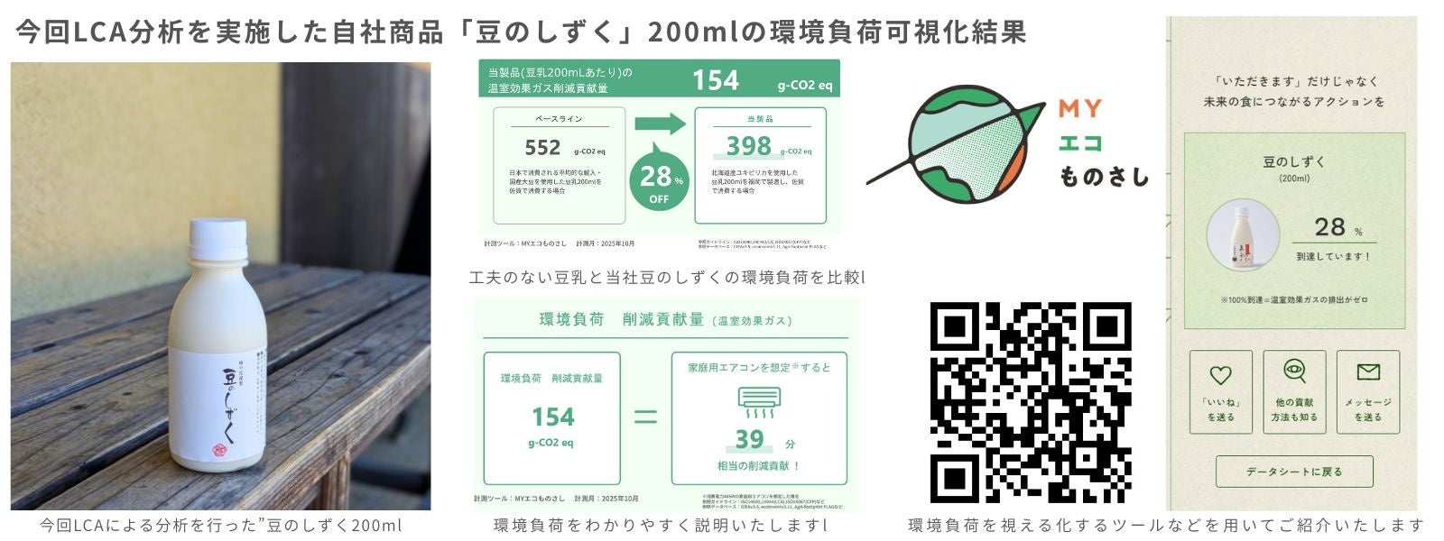 ☆自社豆乳「豆のしずく200ml」のLCA分析結果を展示
