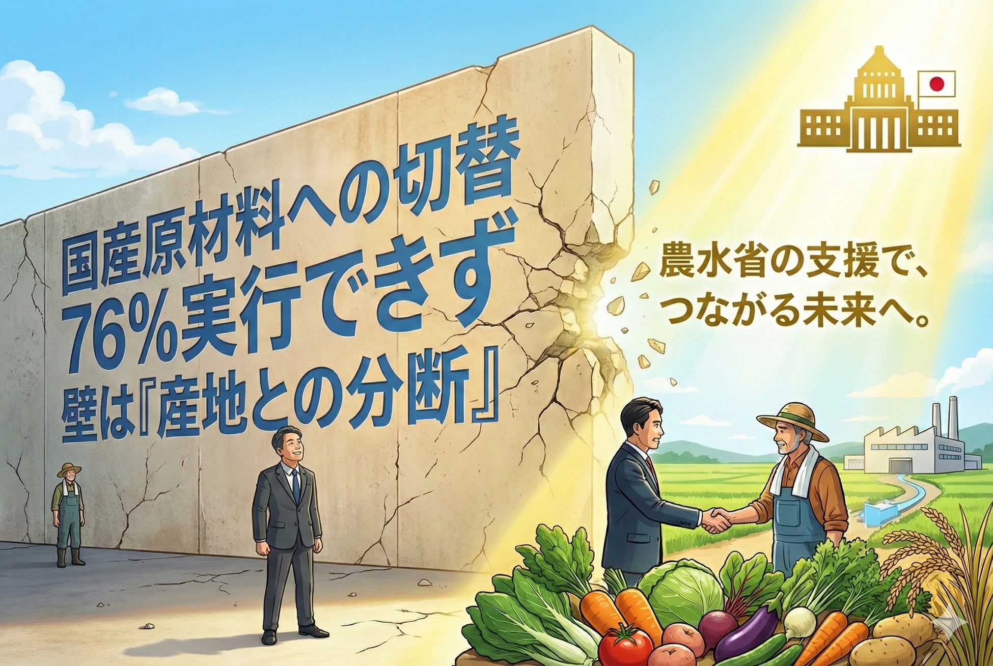 本調査から、中小食品製造業者が国産原材料への切替を実行できない背景には、産地との「分断」があることがわかりました。