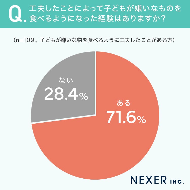 最後に、工夫したことがあると回答した方に、その工夫によって子どもが苦手な食材を食べるようになった経験があるかを聞いてみました。