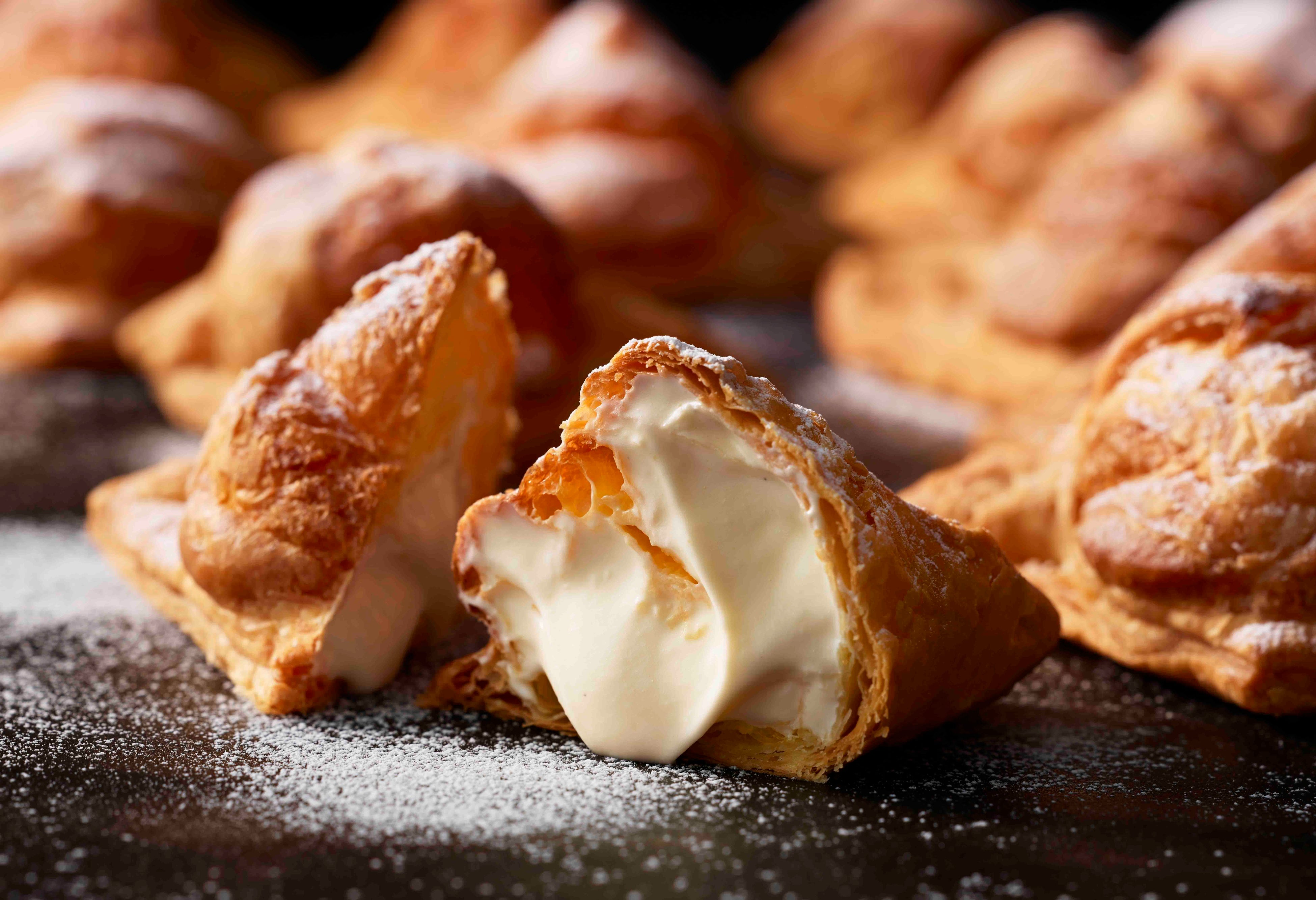 店内のオーブンで焼き上げた”サクサク”のパイに、北海道製生クリームを使用した特製のミルククリームを詰めました。