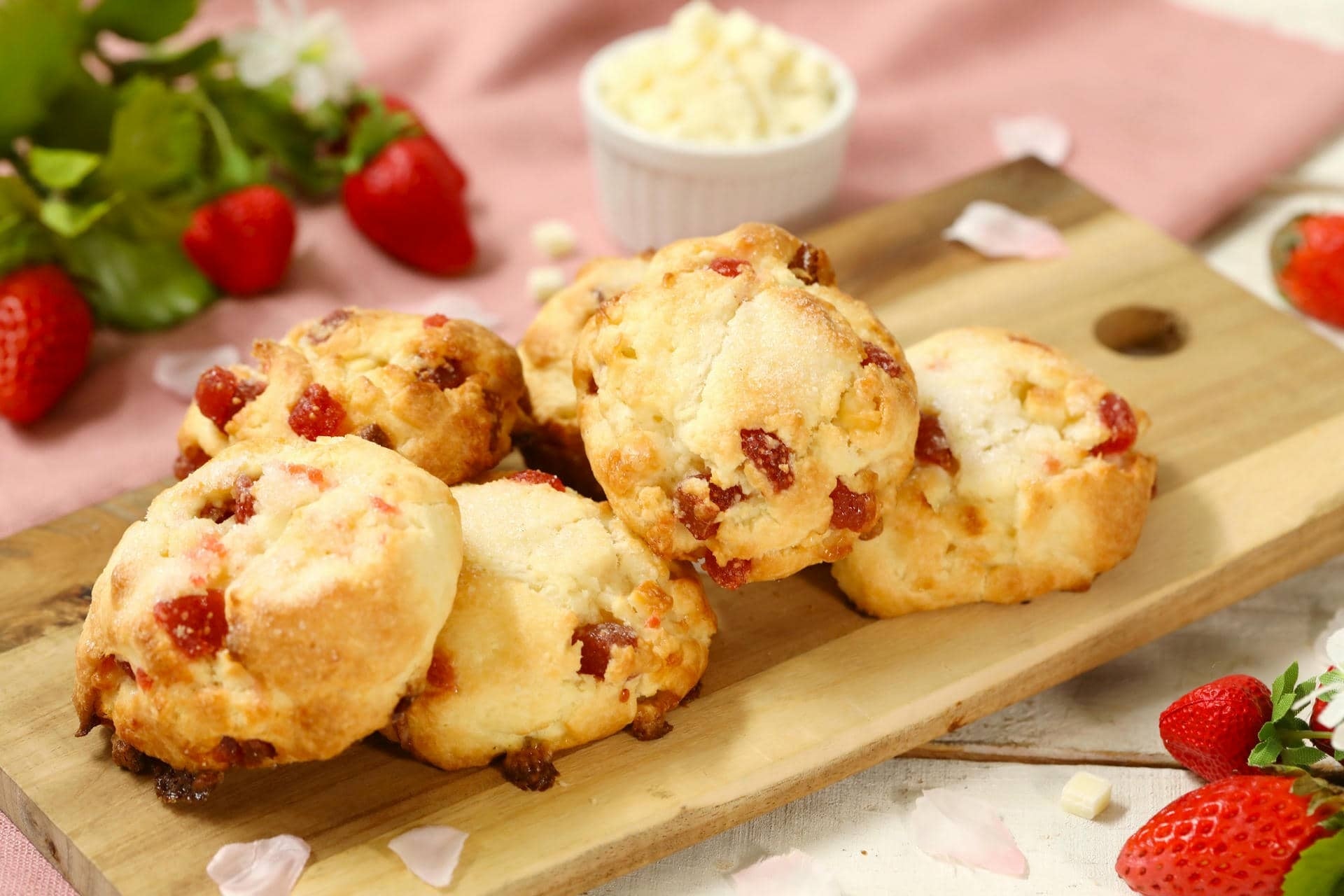 こみ、ホワイトチョコとドライストロベリーを合わせて焼き上げました。一口食べればアー