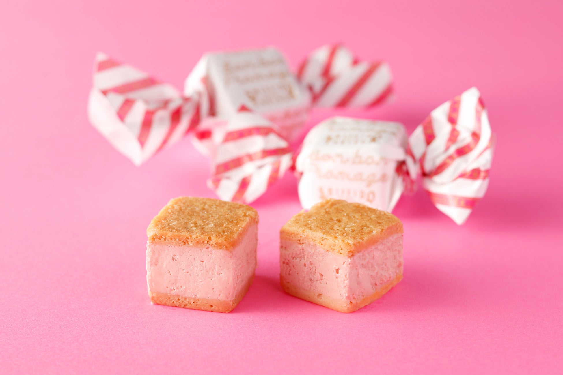 キャンディ包みがかわいい、キューブ型ひとくちチーズケーキです。濃厚ながらサワークリームの軽さが効いた「ナチュール」、甘酸っぱい苺味の「フレーズ」、チョコレートのほろ苦さが魅力の「ショコラ」の3種。