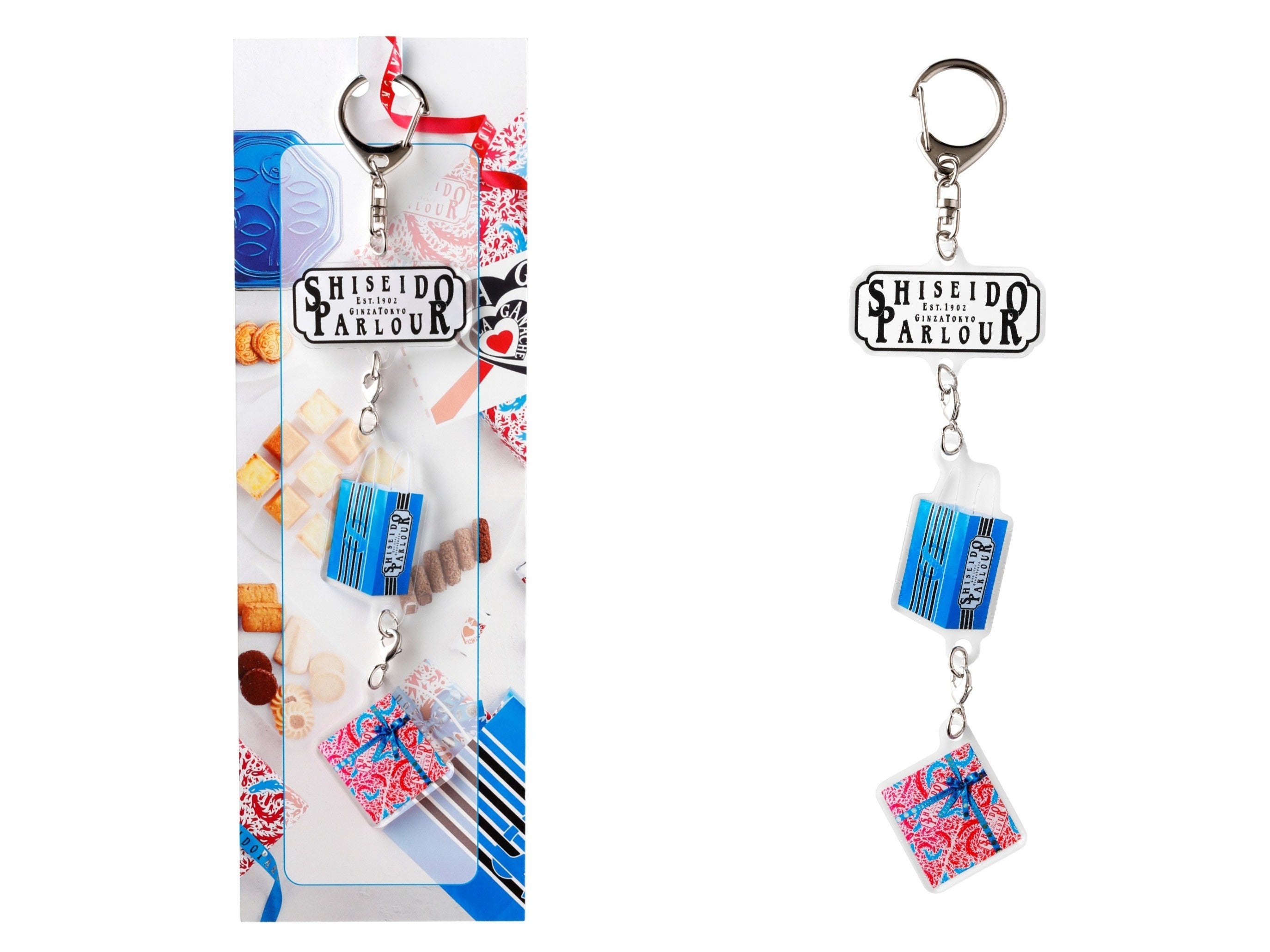 1会計につき3,240円(税込)以上ご購入のお客さまに、資生堂パーラーのアイコンとして親しまれている「ハンディバッグ」と「ギフト包装」、そして資生堂パーラーのロゴをモチーフにした3連のオリジナルアクリルキーホルダーをプレゼントいたします。ぜひバッグやポーチに付けて、資生堂パーラーの彩りをお持ち歩きください。