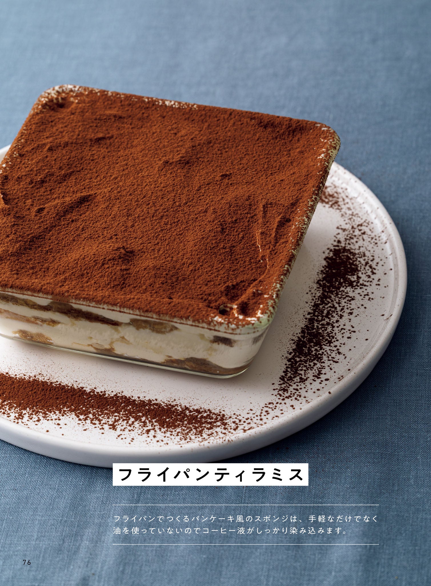 さらに3章ではオーブンいらずのカフェ風おやつとして、海外でも流行中のりんごのパンケーキや、レモンクレープ、フライパンティラミスなどを紹介。