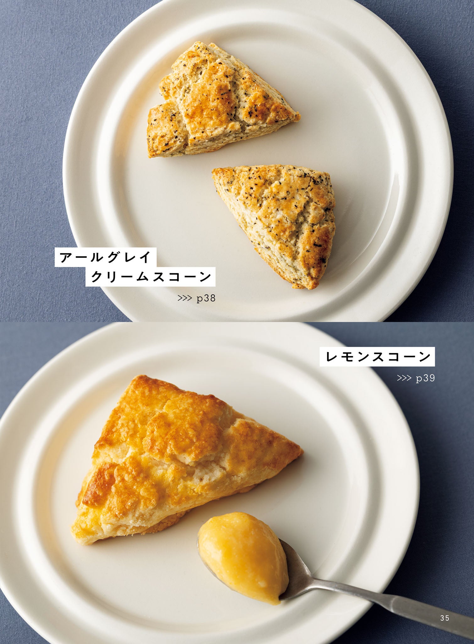 1章では型なしで作れるナッツクッキー、そば茶クッキー、チョコチャンクスコーン、レモンスコーンなど、サクほろ食感のおやつを。