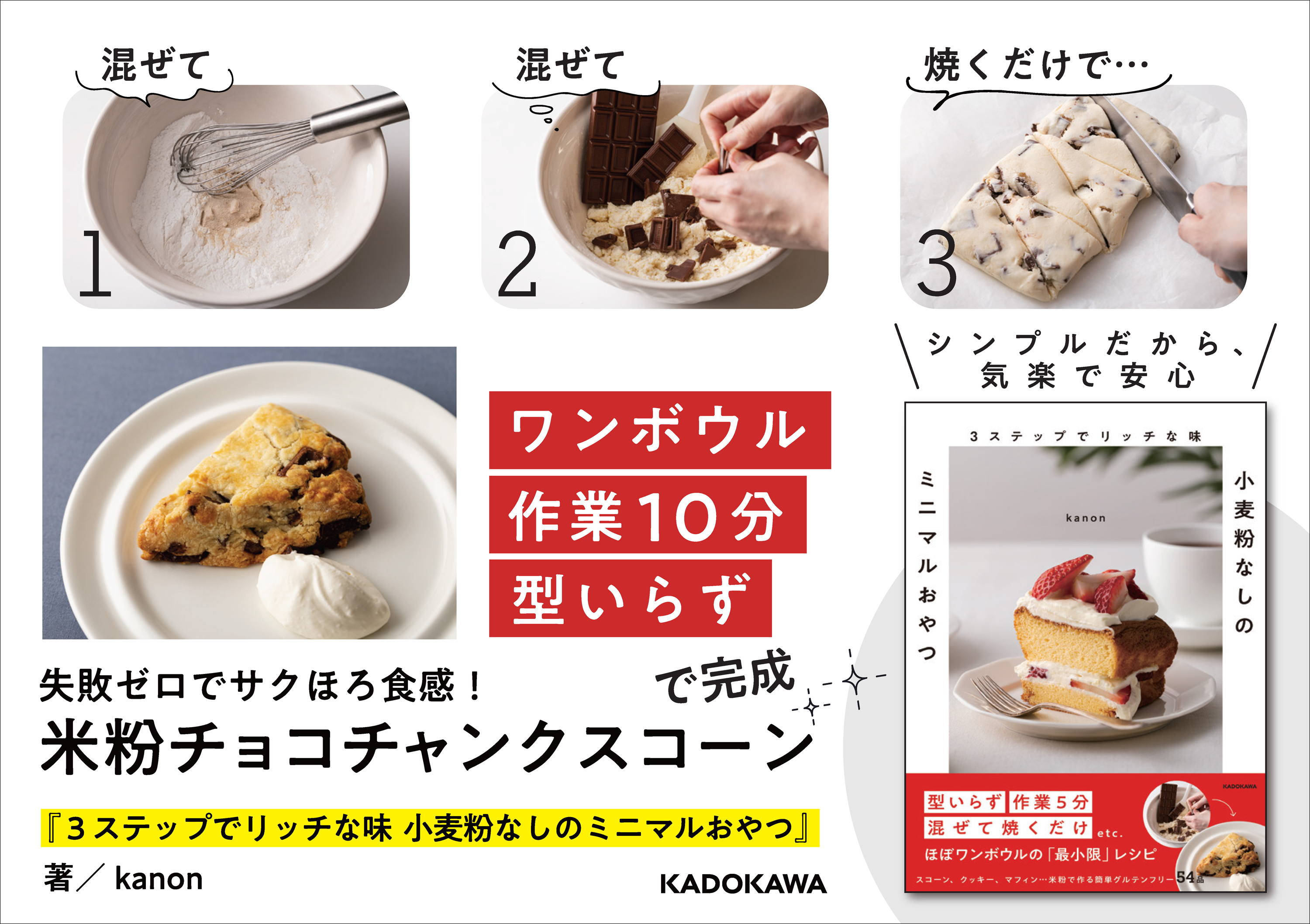 株式会社KADOKAWA(本社:東京都千代田区、取締役 代表執行役社長 CEO:夏野剛、以下KADOKAWA)は、2026年2月12日(木)に、『3ステップでリッチな味 小麦粉なしのミニマルおやつ』(著:kanon)を発売いたしました。