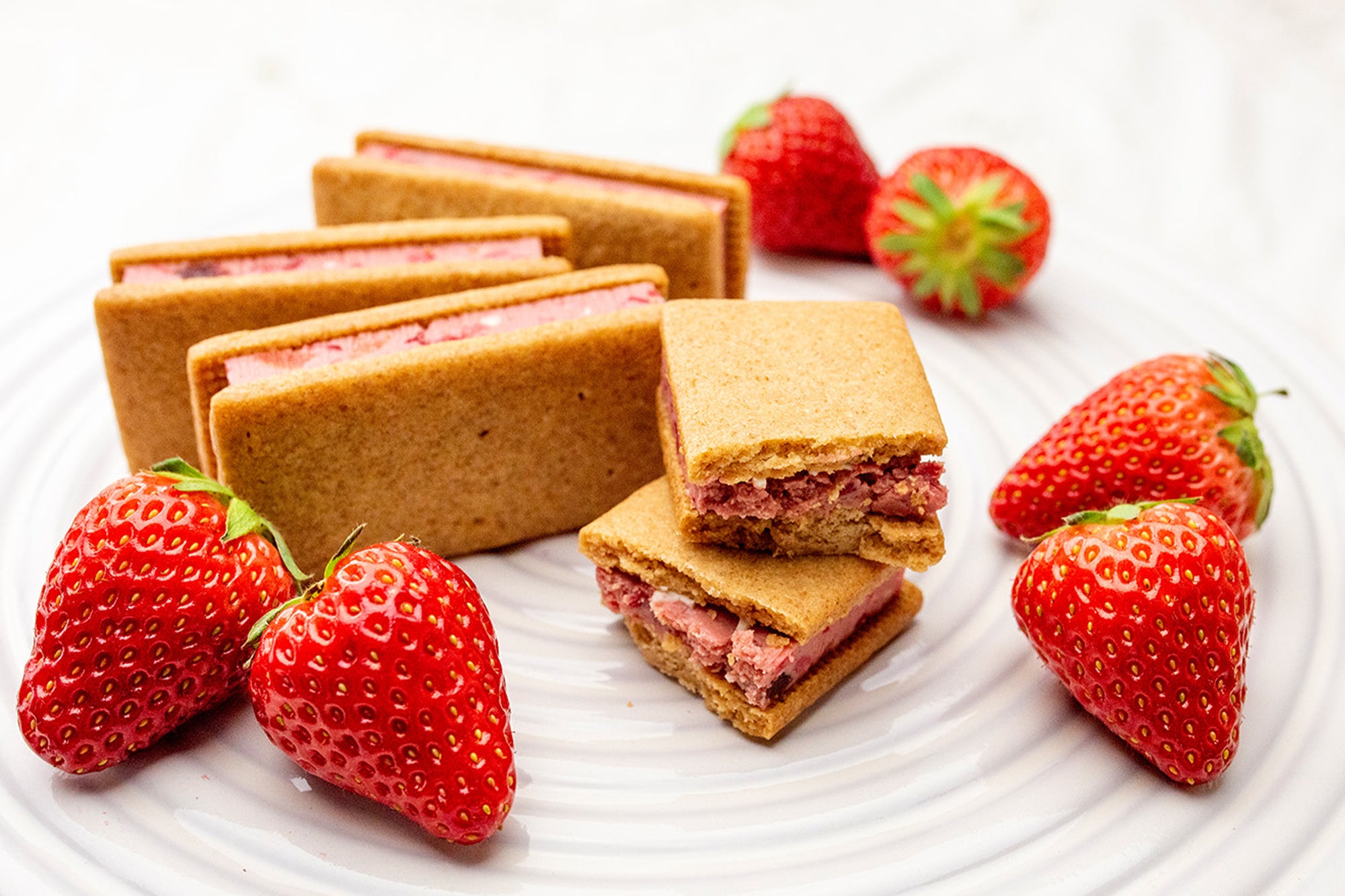 ひとくちほおばると思わず笑顔になる。サクサクのサブレにイチゴガナッシュをサンドした、ご好評をいただいているクッキーサンドです。