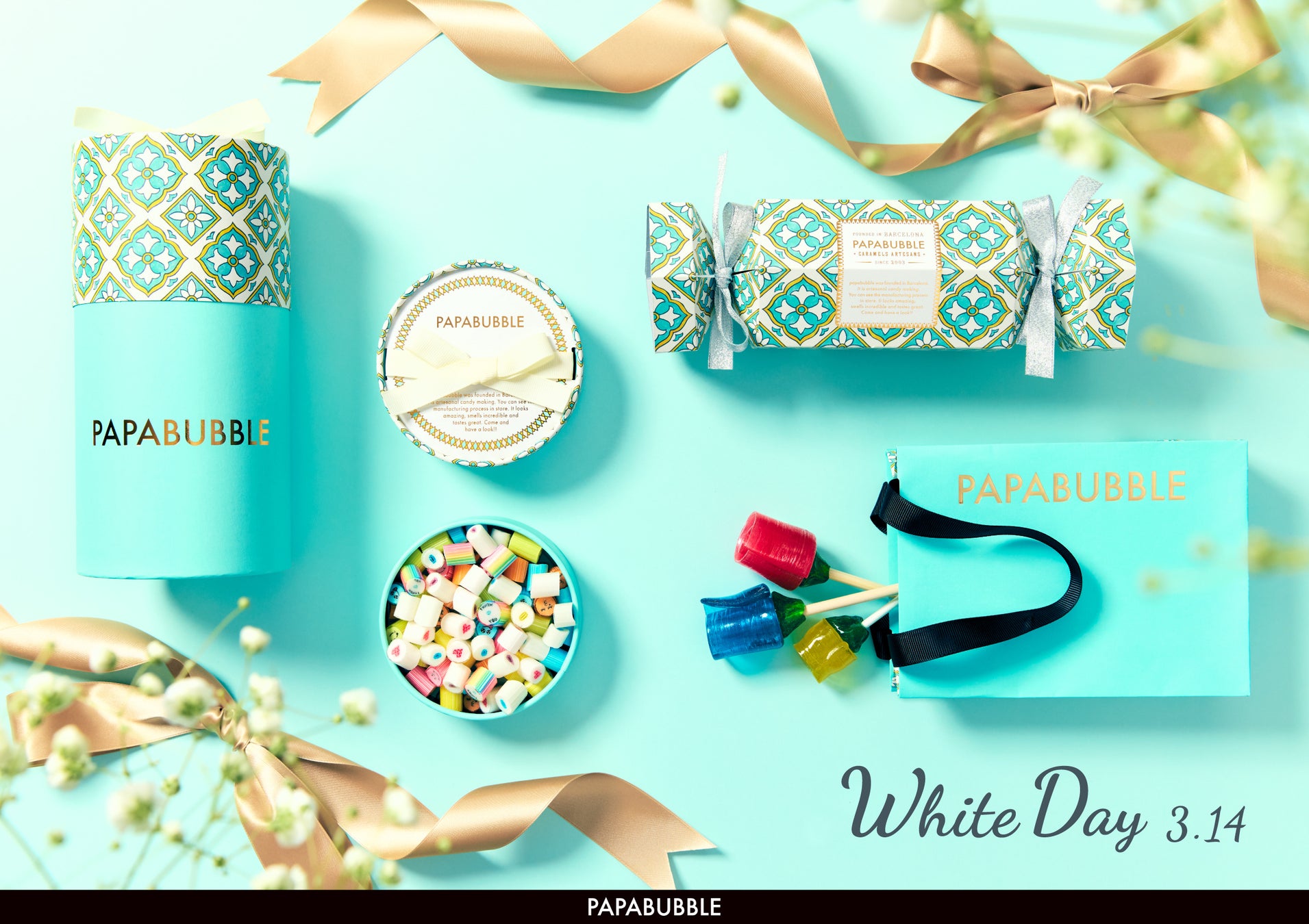 Craft Candy Theater「PAPABUBBLE/パパブブレ」は、3月14日のホワイトデーに向けて、宝石のように輝くキャンディに感謝の気持ちを込めた「ホワイトデーシリーズ」を、2月12日(木)よりパパブブレ公式サイト(https://papabubble.co.jp/collections/2026-whiteday)にて予約受付を開始、2月19日(木)より全国店舗にて発売いたします。