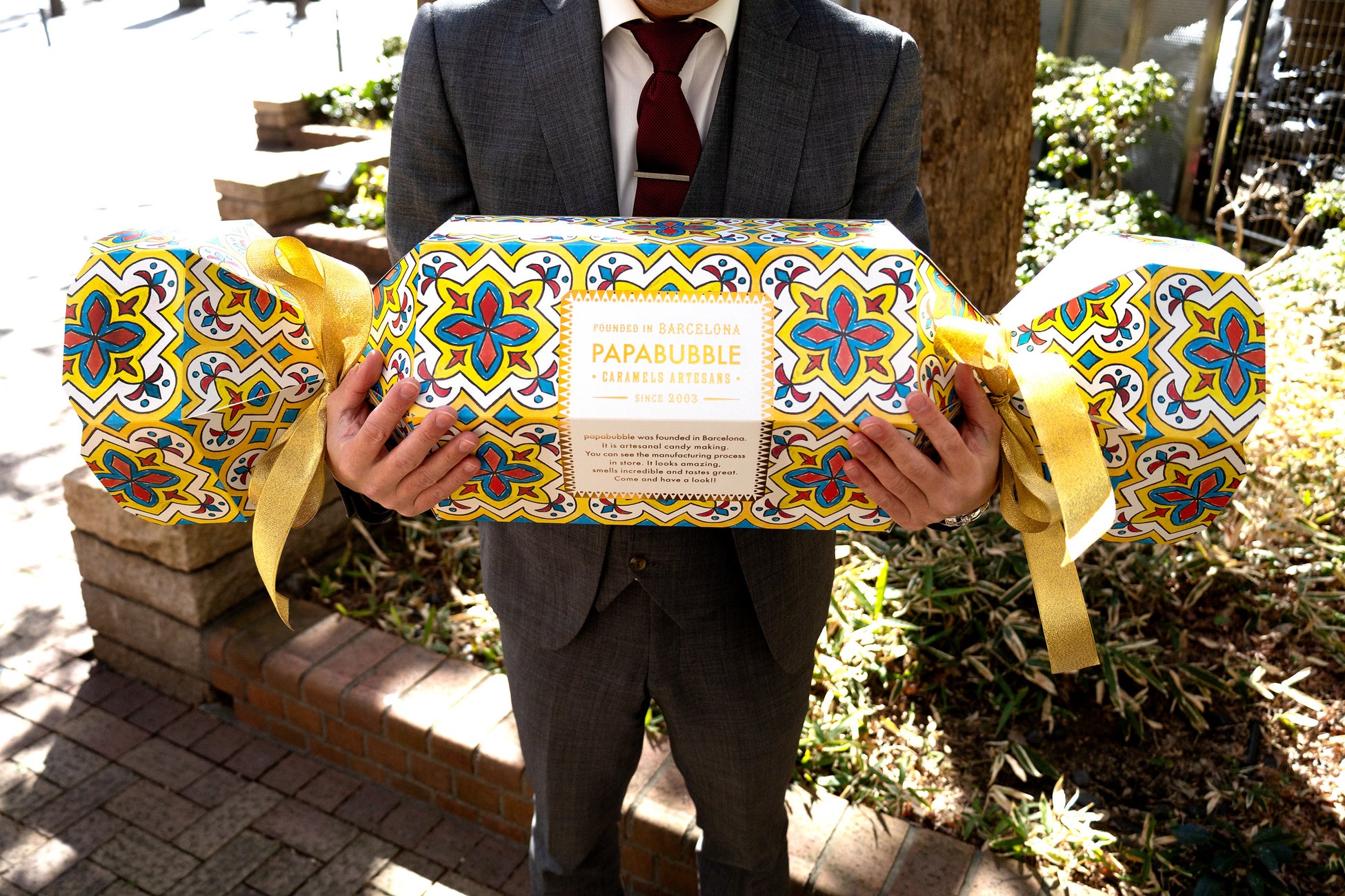 リボン、箔押しロゴ、タイル柄など、細部までこだわった高級感のあるパッケージで、コンパクトながらもしっかりと特別感を演出します。