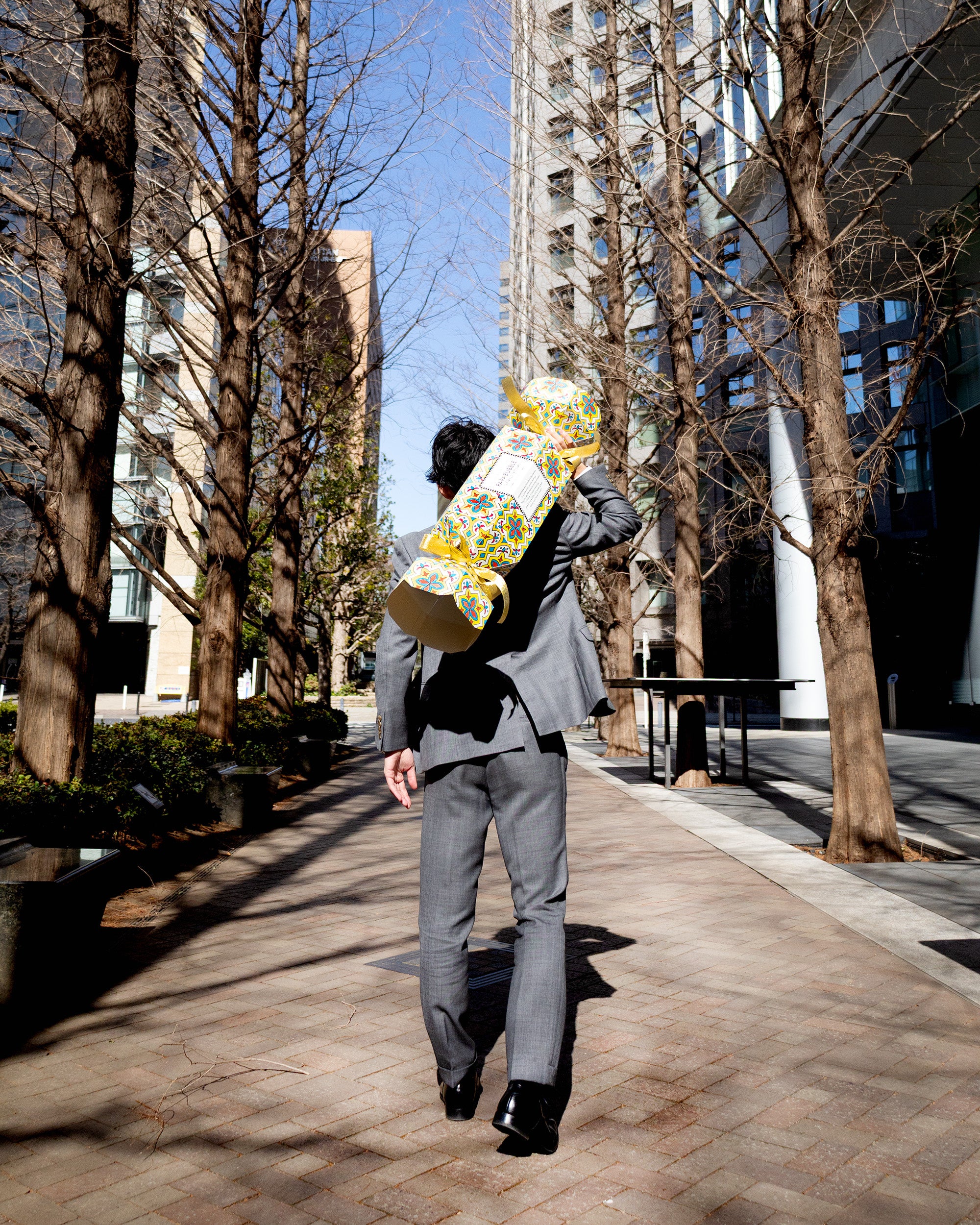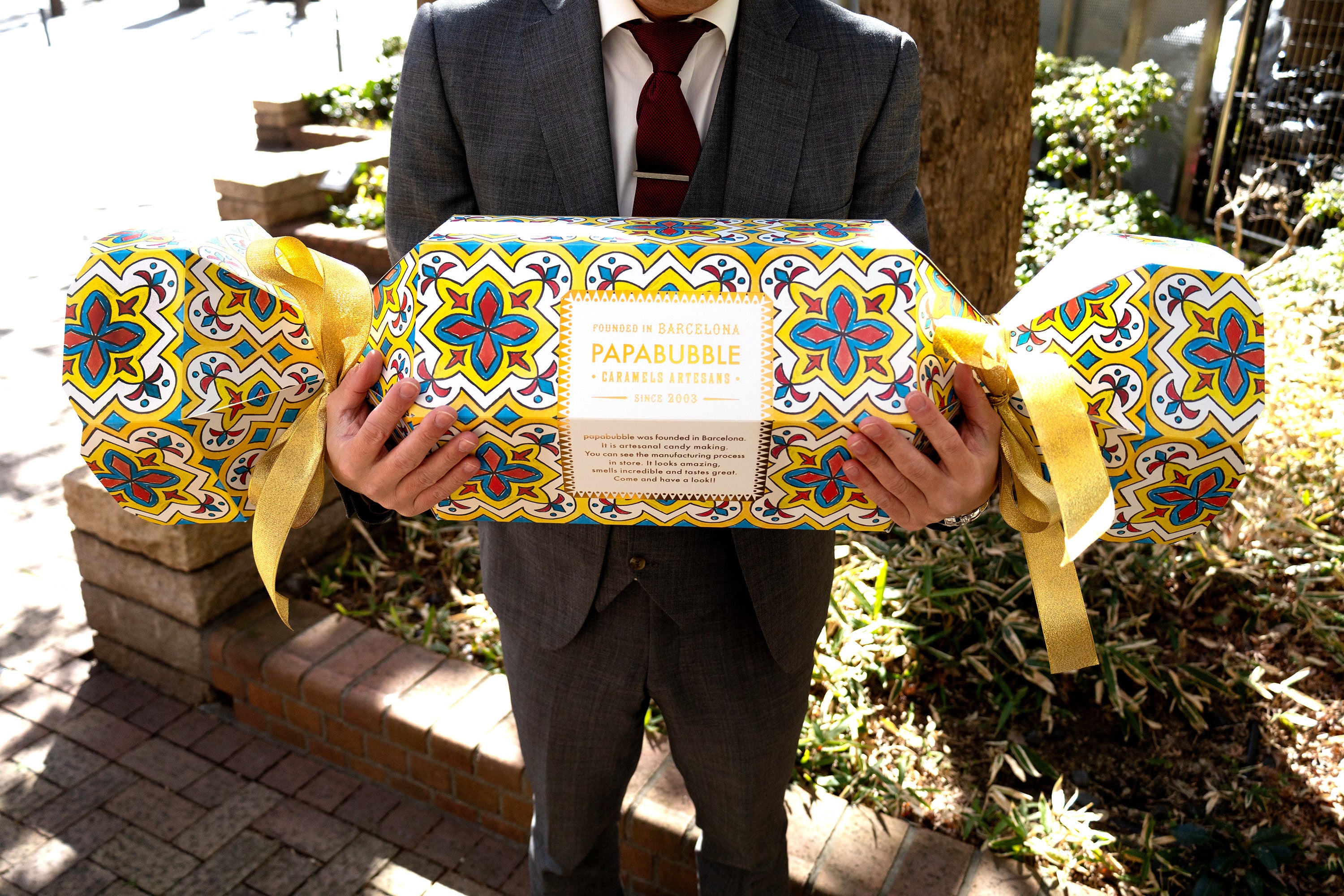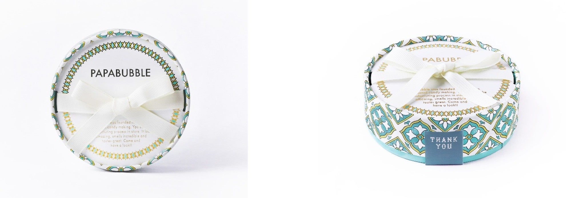 リボン、箔押しロゴ、タイル柄など、細部までこだわった高級感のあるパッケージで、コンパクトながらもしっかりと特別感を演出します。