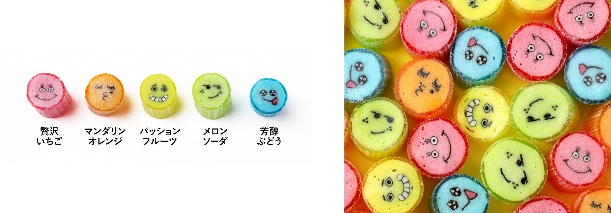 誰に贈っても喜んでいただける、PAPABUBBLEの人気キャンディ「かおミックス」。「ありがとう」を伝えるのにぴったりな、親しみやすく楽しいキャンディは、表情・配色・フレーバーの全てを担当職人がこだわり抜いてセレクトしています。