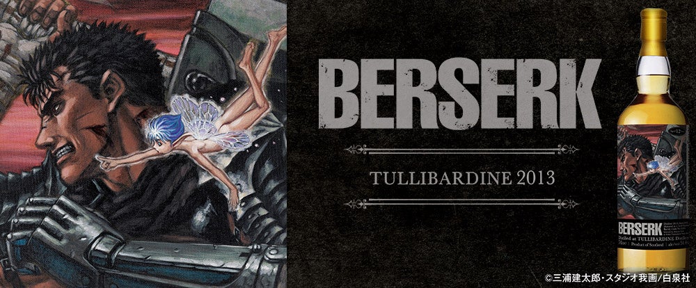 今回でWHISKY MEWからのリリースは第4弾となる『ベルセルク』ラベル・ウイスキー。このラベルに選んだウイスキーは、ゲール語で「丘の上の荒地」という意味をもつタリバーディン。そのイメージは、ベルセルクの舞台となる荒野や戦場を連想させます。