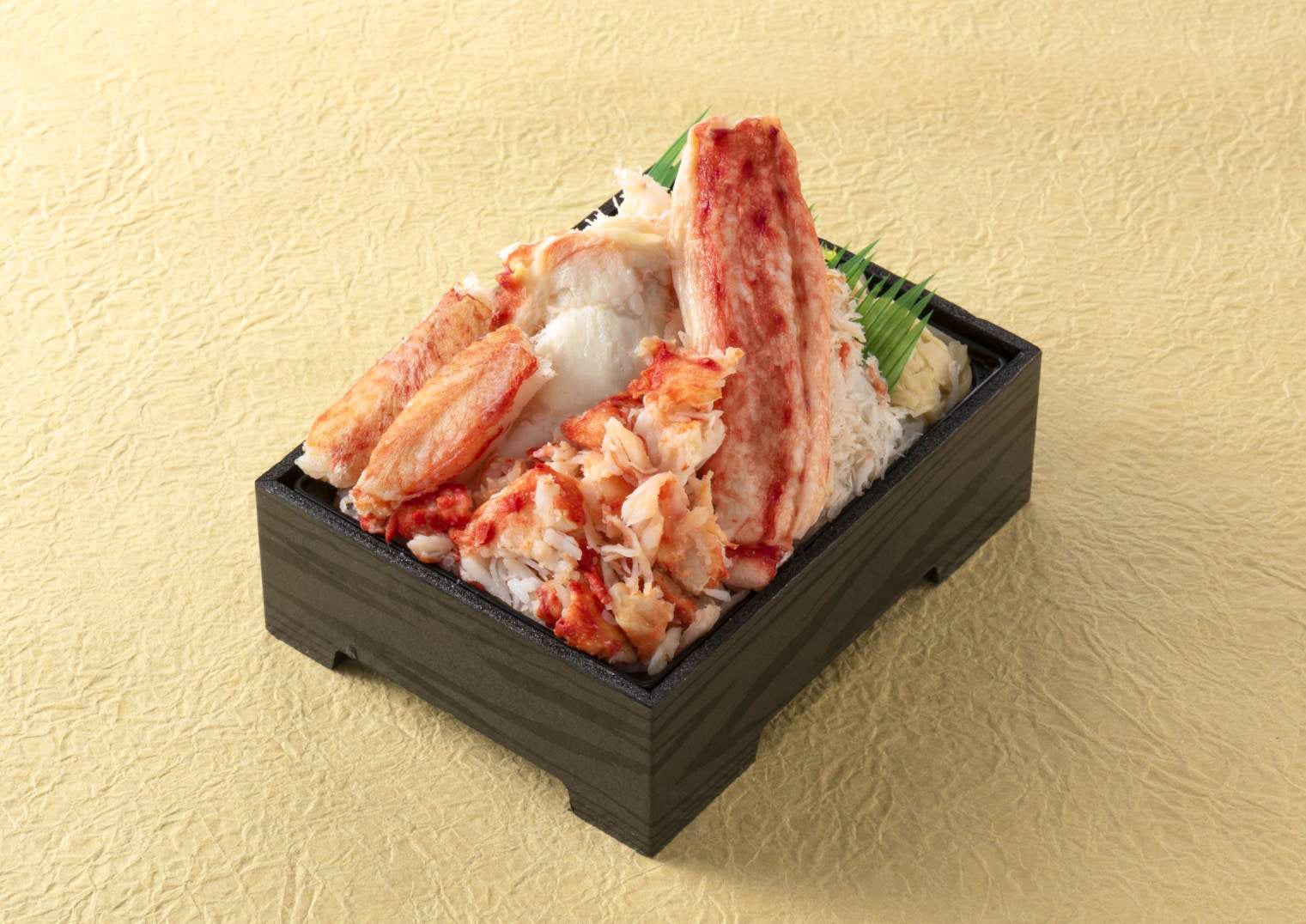 毛ガニ、タラバガニ、ズワイガニの三種の蟹が贅沢に盛られた食べ応えのあるお弁当。