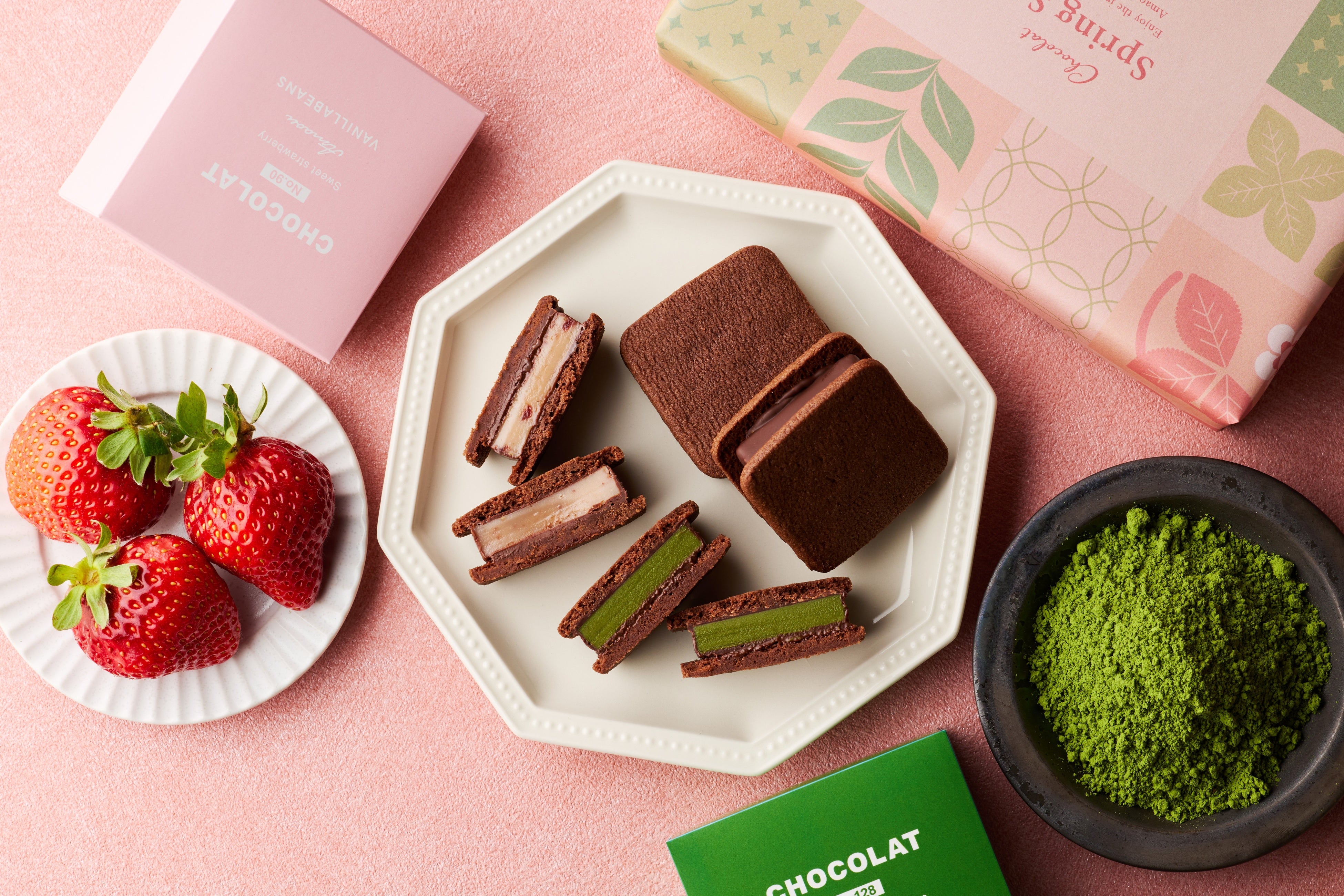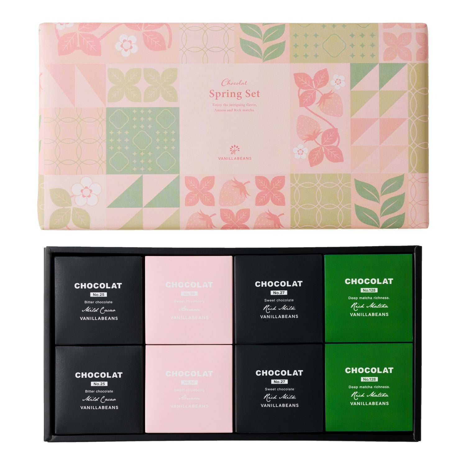 チョコレートデザイン株式会社(代表取締役:大槻昌弘、本社所在地:横浜市)が運営する、横浜発のクラフトチョコレート専門店VANILLABEANS(バニラビーンズ)は、ホワイトデーや卒業・送別シーズンに向けて、毎年ご好評をいただいているギフトアソート「スプリングセット」をリニューアルし、2026年2月16日(月)よりオンラインショップにて、2月19日(木)より実店舗にて販売開始いたします。今年は、看板商品の生チョコクッキーサンド「ショーコラ」から新作フレーバー「深み抹茶」が初登場。春をイメージしたこの時期だけの特別仕様のパッケージで、ひと足早く春の訪れをお楽しみいただけます。