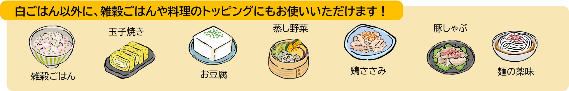 ごはんに混ぜ込む以外にも料理のトッピングにもお使いいただけますので、お客様にお気に入りの使い方をどんどん発見していただけると嬉しいです。