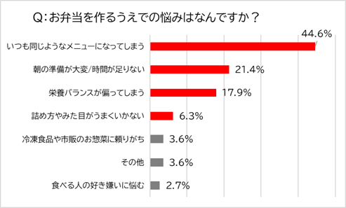 その一方で、お弁当作りの困りごととして、