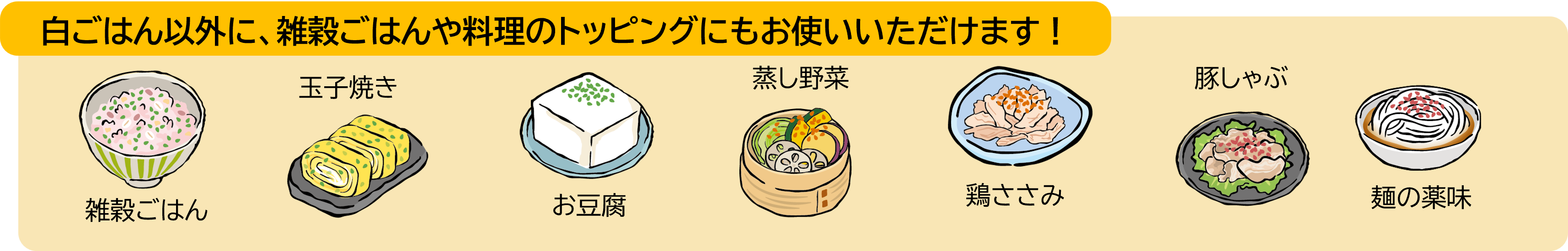 ごはんに混ぜ込む以外にも料理のトッピングにもお使いいただけますので、お客様にお気に入りの使い方をどんどん発見していただけると嬉しいです。
