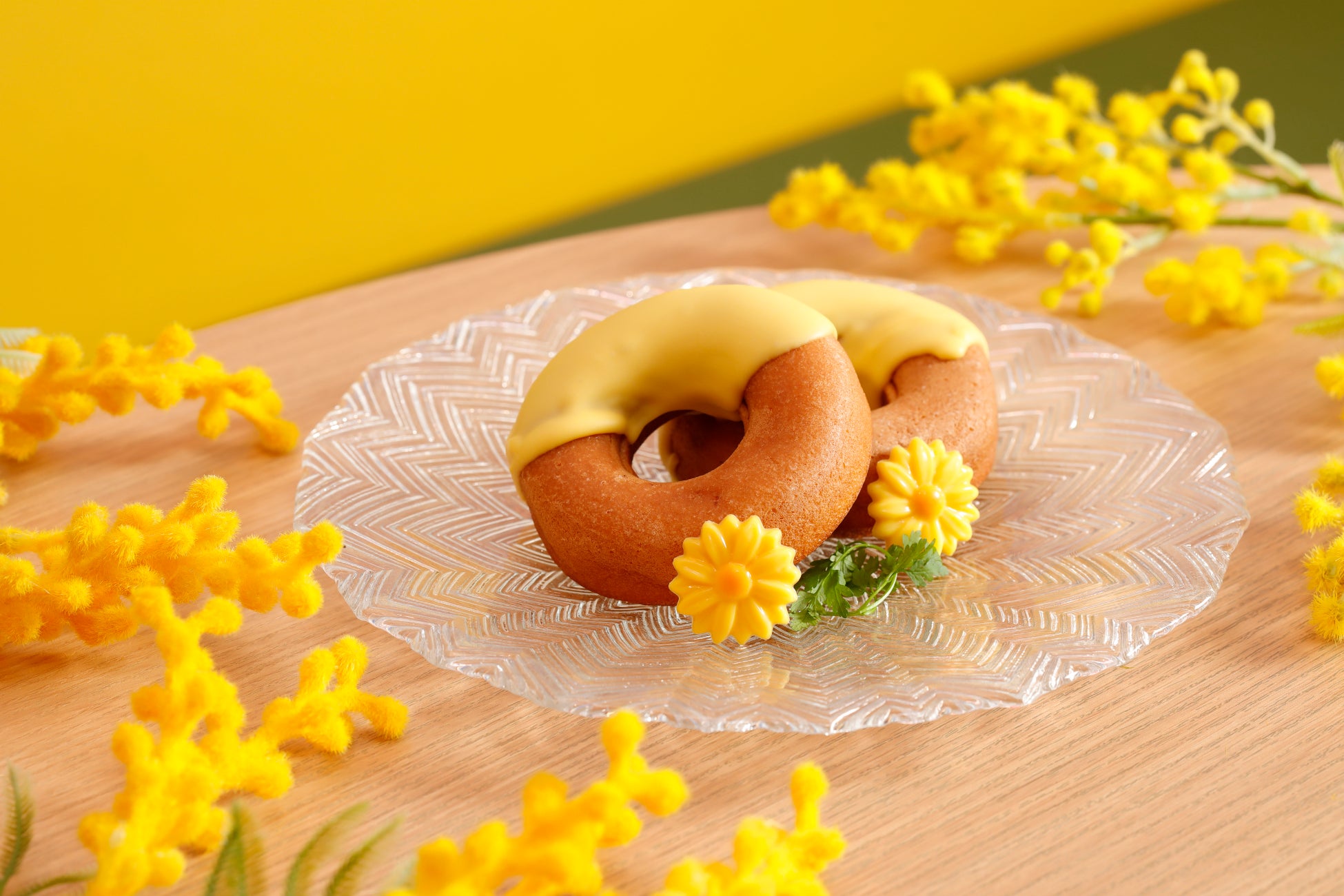 デザートコーナーには、ほんのり香ばしく、しっとり食感が楽しめる「HAPPY YELLOW ベイクドドーナッツ」が登場。ハッピーイエローカラーのチョコレートがティータイムを明るく彩ります。