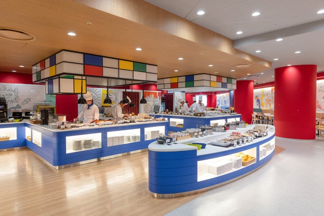 ライブキッチンでは、大人気の「国産牛肉の鉄板焼き」をはじめ、トマトやクリームベースの3種類の「パスタ」やふわふわのたまごが乗った「オムライス デミグラスソース」をご提供。ライブキッチンならではの音や香りとともに、出来たての味をご堪能いただけます。