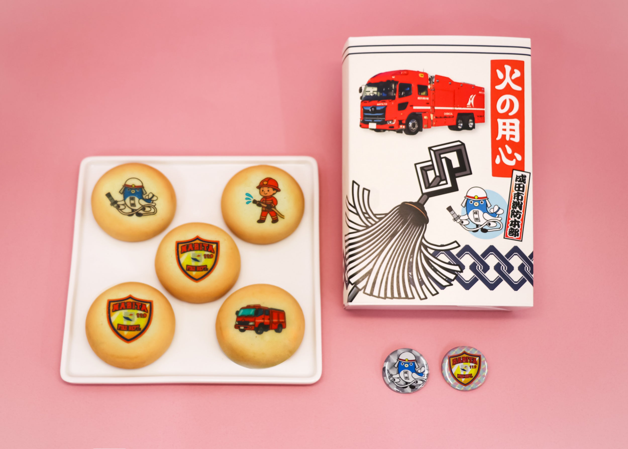 成田市消防本部(成田市花崎町760番地)とコラボレーションした「火災予防イラストまんじゅう」を