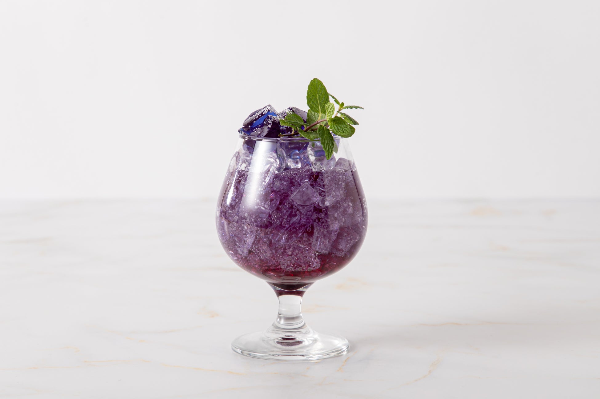インスタレーション「Space Traveler」をモチーフに、宇宙を感じさせるグラデーションで表現したドリンク。甘さの中にレモンの酸味とミントの清涼感が広がります。