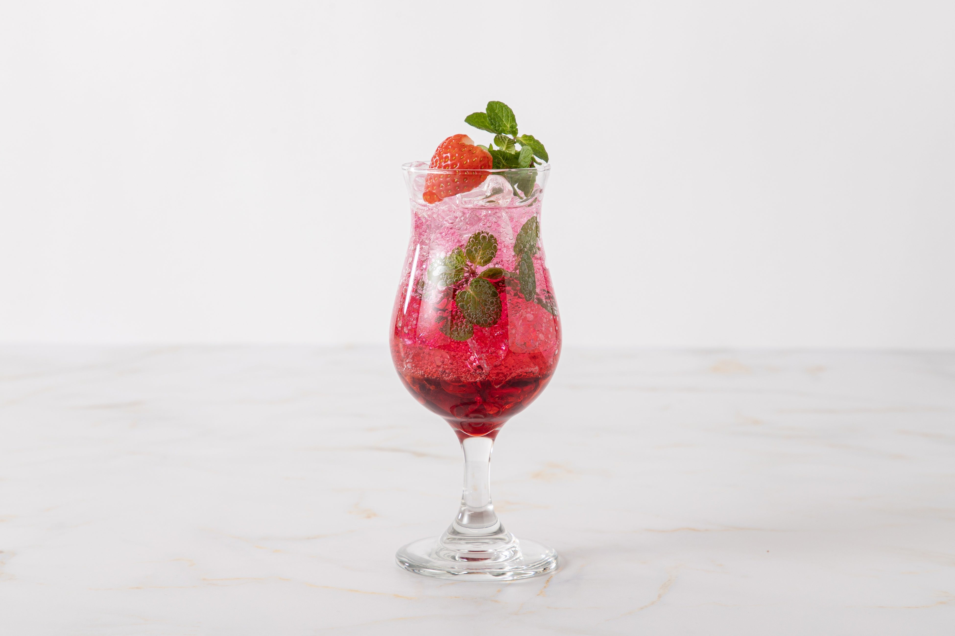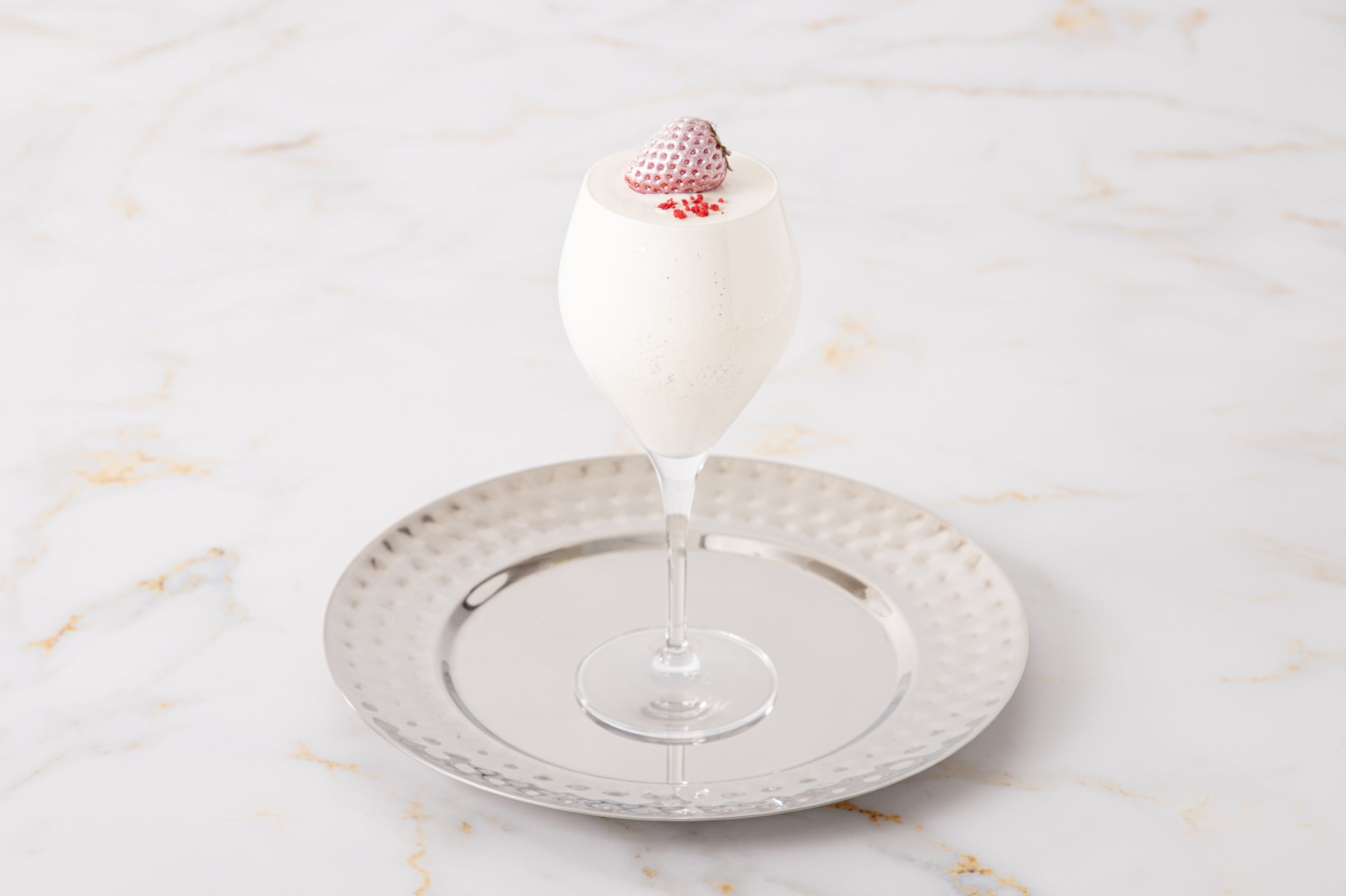 シルバーのきらめきがグラスの中で揺らめく、「光と反射」を表現した爽やかなソーダ。