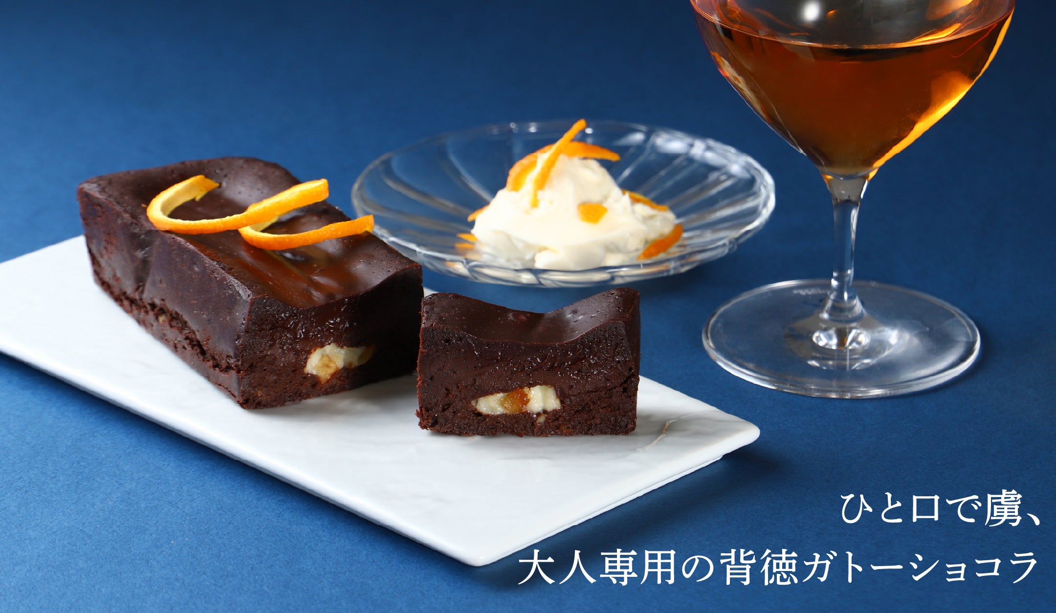 「罪なガトーショコラ -白の誘惑-」は、「お酒と一緒に楽しめる、特別なスイーツ」を目指して開発した、お酒との相性を追求したガトーショコラの第2弾です。濃厚チョコレートとスパイスに背徳をもとめた第1弾はクラウドファンディングで販売し、目標金額の450%を上回り達成しました。チョコレートと相性の良い素材を極限まで追求した結果、辿り着いたのは「濃厚なクリームチーズ」と「爽やかなオレンジ」という王道かつ至高の組み合わせです。
