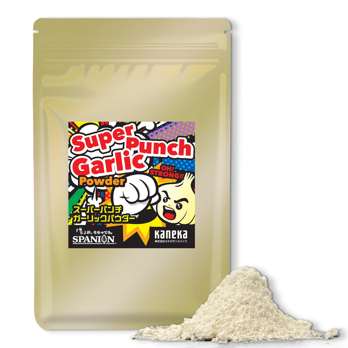 そんな当社の自信作である「スーパーパンチガーリック」は、香料などは使用せず、素材本来の香りを凝縮するという本物志向をコンセプトに開発。2005年の発売以来、品質に厳しい大手食品メーカー様に数多くご採用いただき、累計販売量500㌧を超えるヒット商品となりました。今回、強烈な業務用スペックのまま、品名を「ガーリックパンチパウダーSP」から「スーパーパンチガーリック」に変え、家庭用に発売します。
