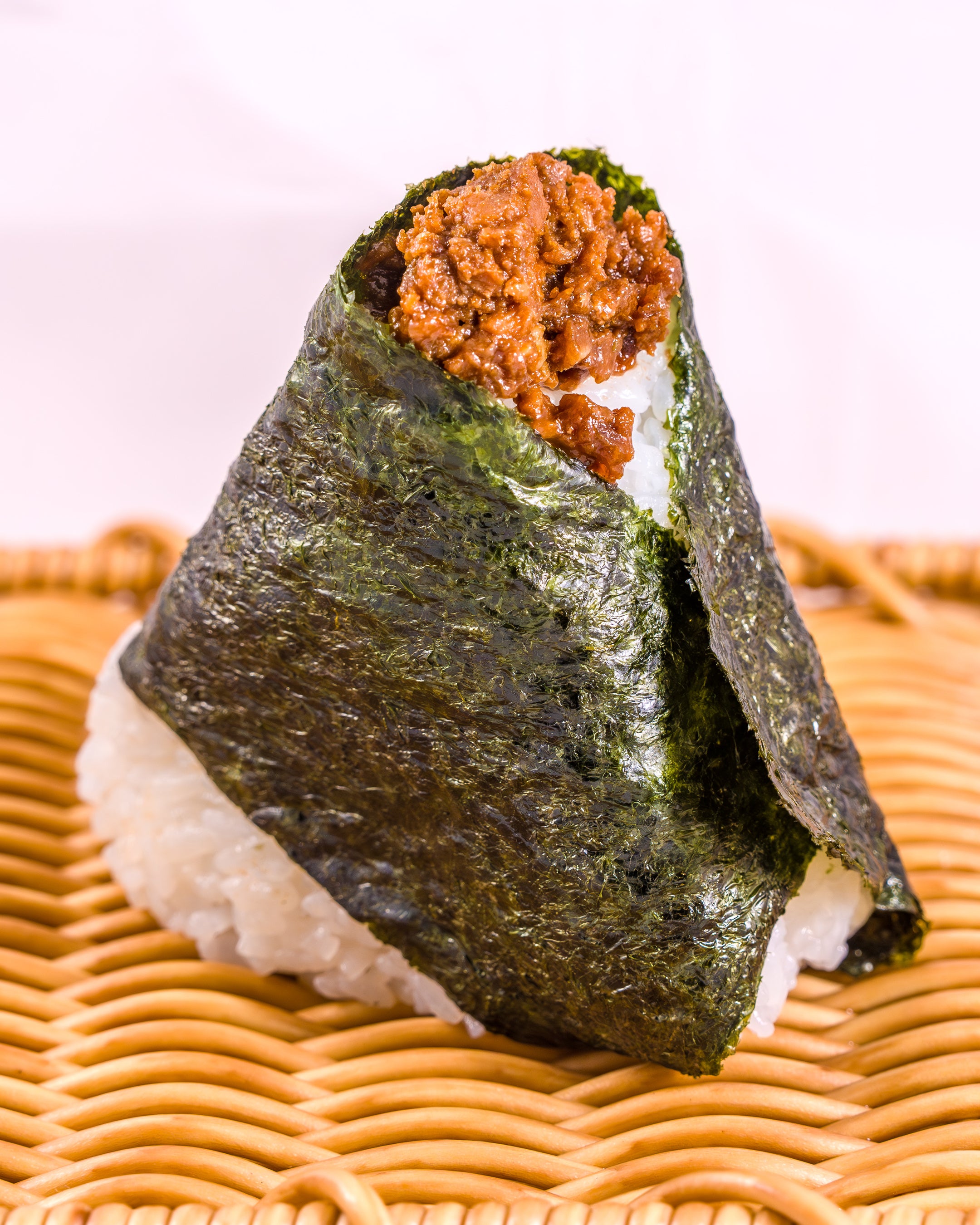 山椒が効いた旨味たっぷりの肉味噌は大人の味。おむすびなのにお酒が飲みたくなる一品です。