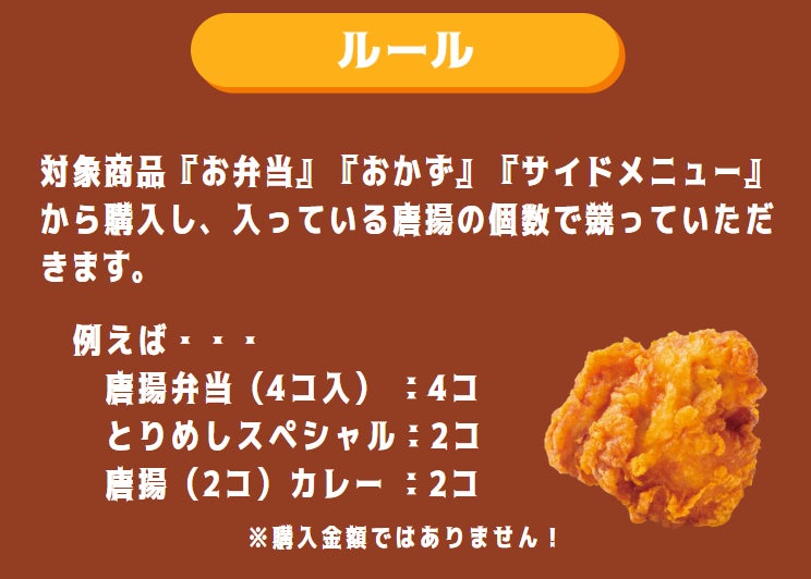 公式アプリ・ほっかアプリ会員さま限定のガチ勝負!唐揚をたくさん食べて豪華景品をゲット!「唐揚チャンピオン」エントリーも本日より開始