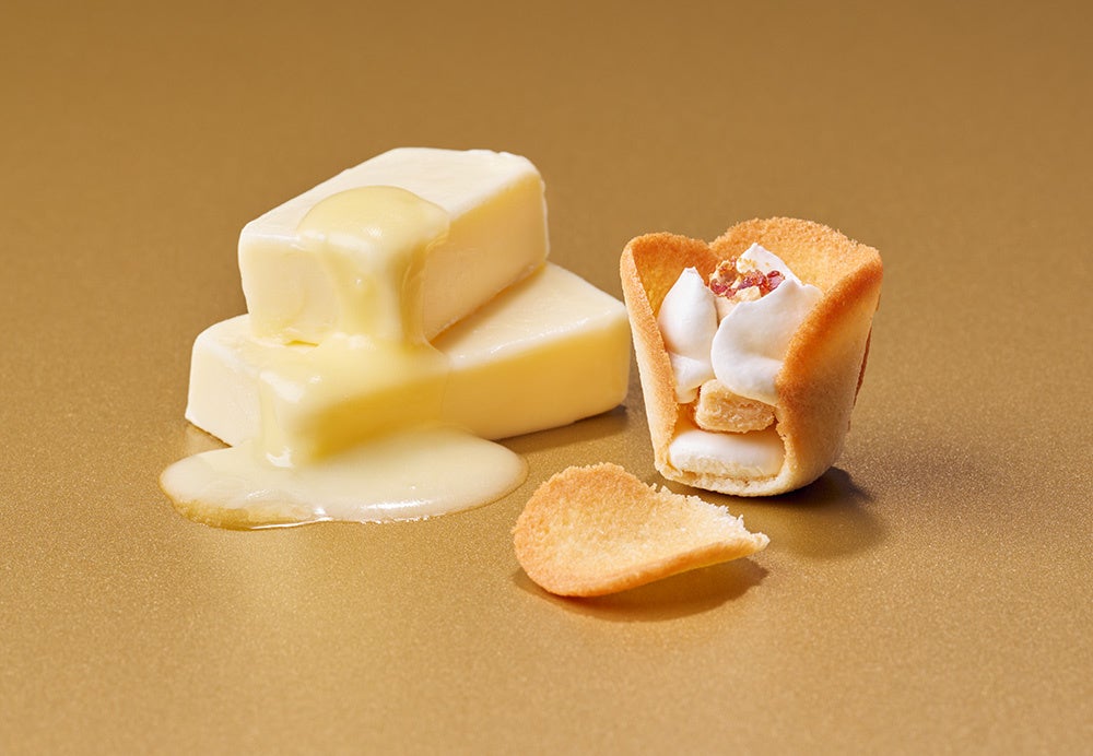 シェフが選び抜いたフランス産発酵バターをラングドシャに新採用。一層なめらかになったとろける生食感ショコラクリームをたっぷり二重にしぼりました。塩バターキャラメル&ミルク仕立ての『バター』に、クリームチーズ&カマンベール仕立ての『チーズ』の2味セットです。