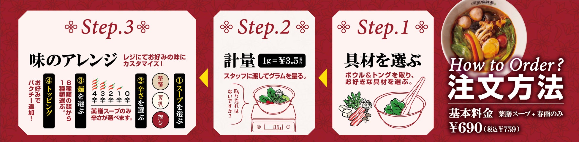 漢方やスパイスを煮込んだ特製の薬膳スープに、彩り豊かな野菜を好きなだけ!美味しく・楽しく・ヘルシー。なのにしっかり満腹になる!毎日でも飽きない「わたしだけの麻辣湯」が、きっと見つかります。