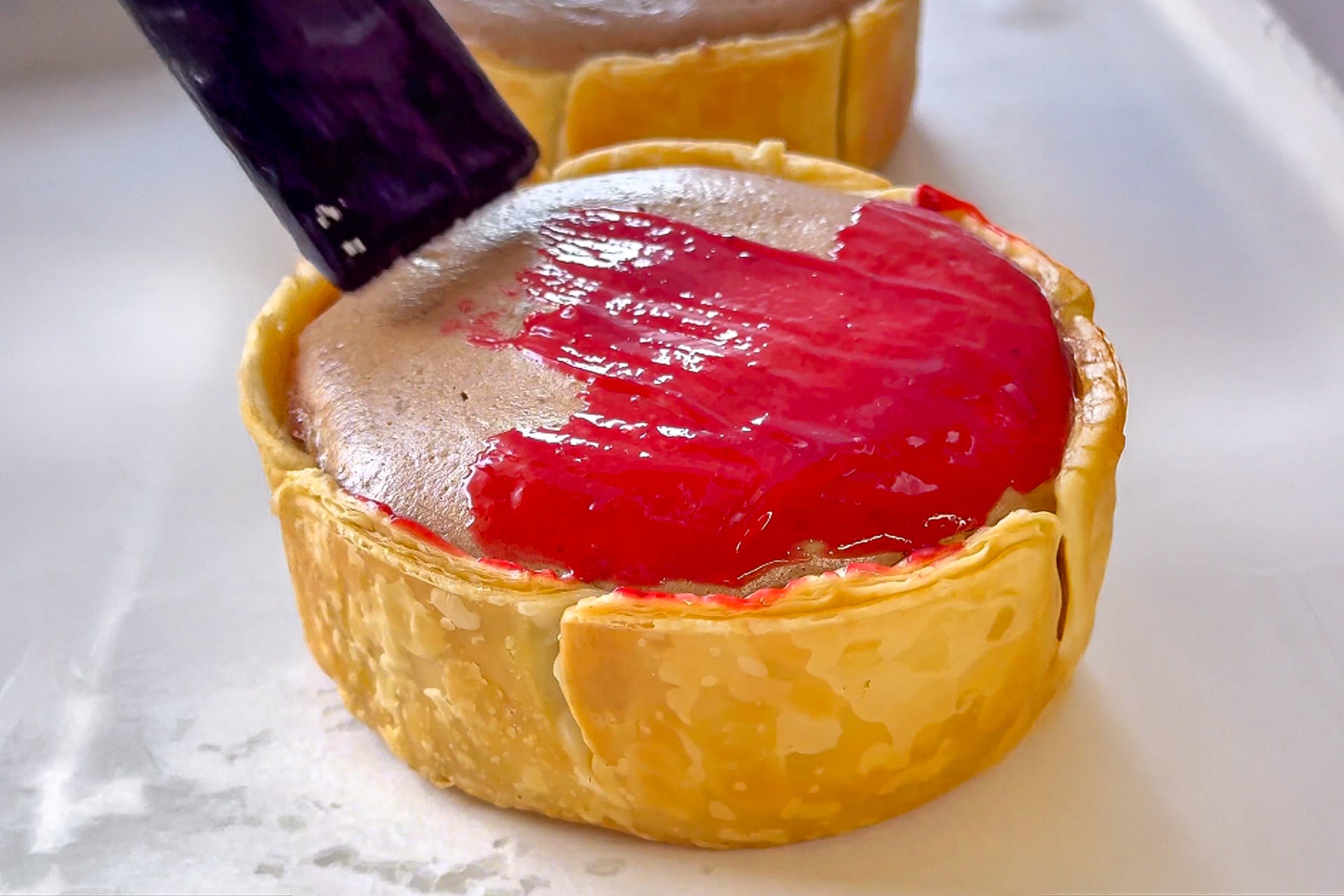 焼き上がった瞬間に現れる、香ばしく色づいたタルトと、ぷるぷると揺れるフィリング。