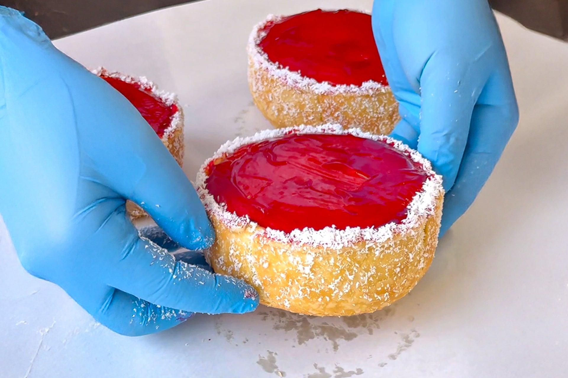 さらに今回は、濃厚なショコラと相性抜群の「苺とラズベリーのダブルベリージャム」を贅沢にまとい、仕上げには真っ白なココナッツフレークを雪のようにトッピング。