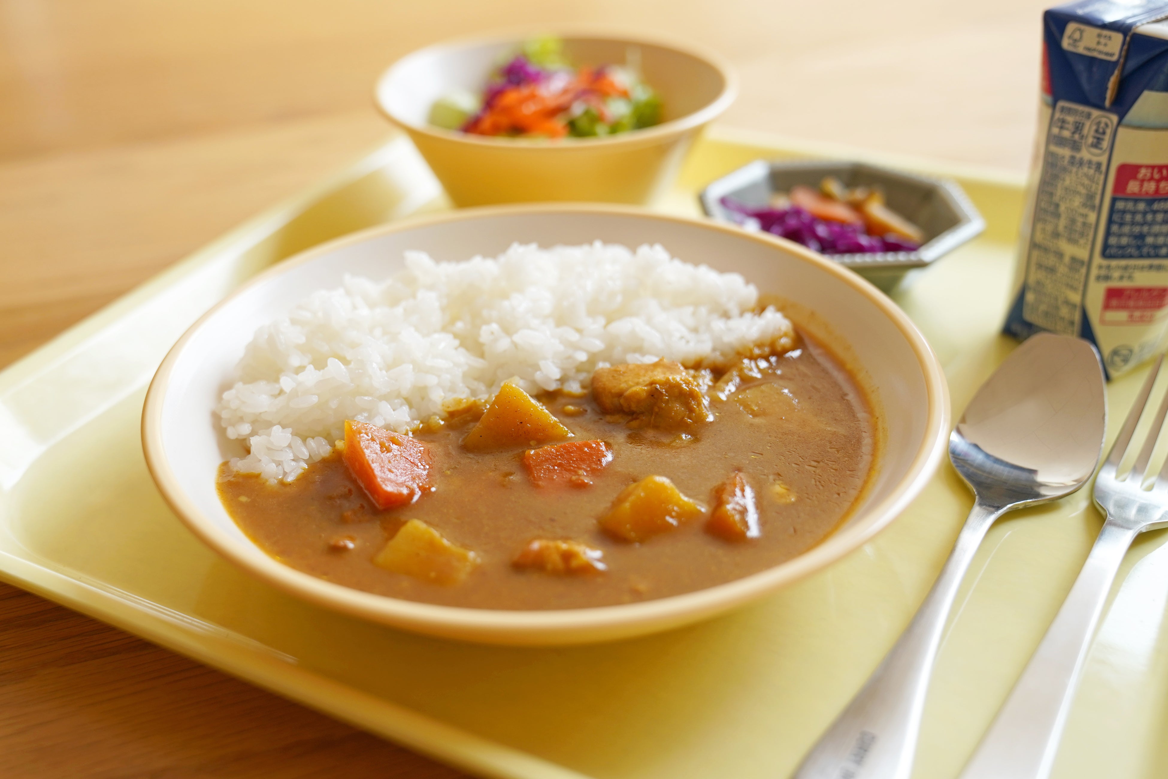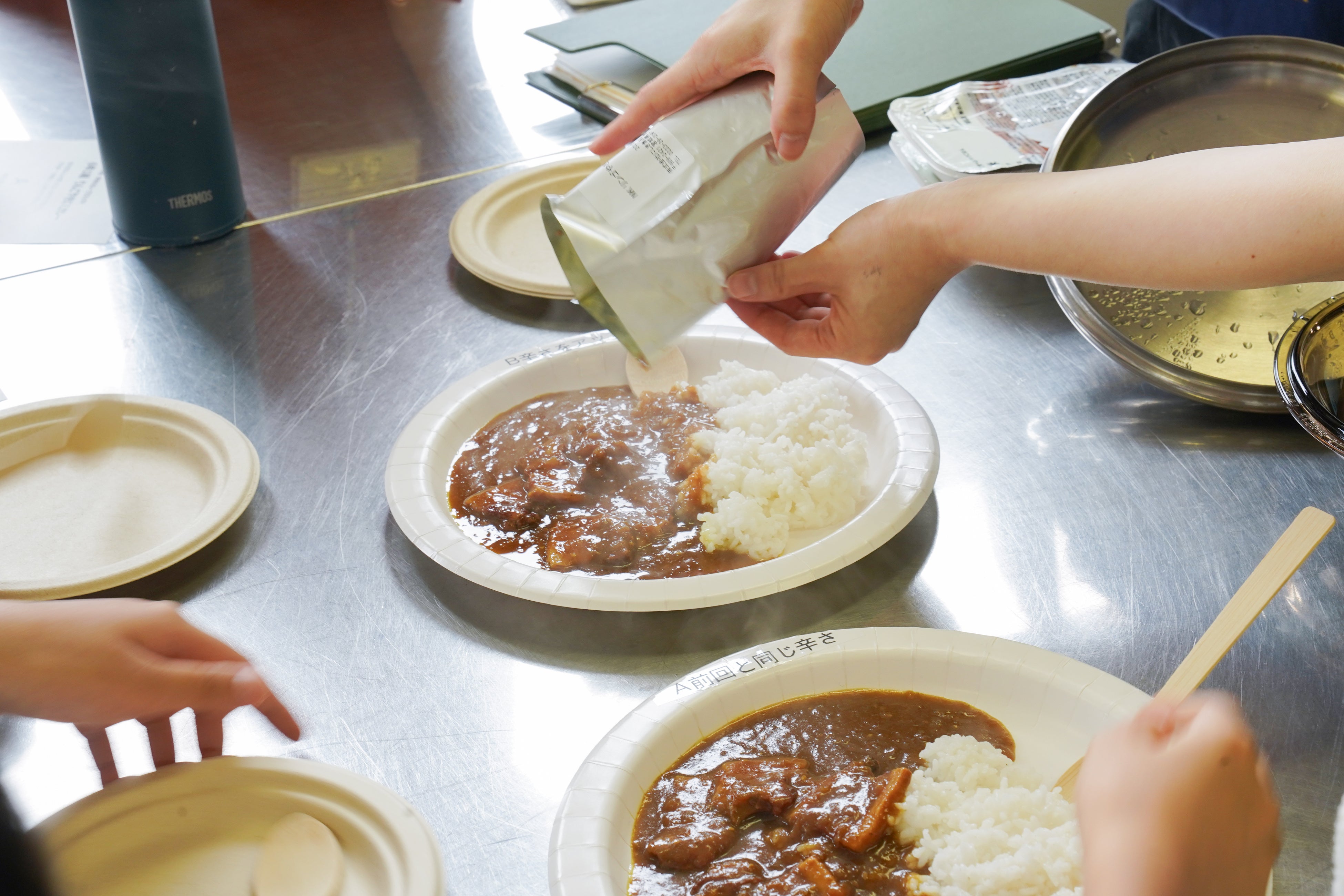 夢のレトルトカレーの発売を記念し、学校の給食をイメージした食器でイートインメニューを提供します。小学生時代のあの頃を思い出しながら、小学生と作った商品をお楽しみいただきたいです。