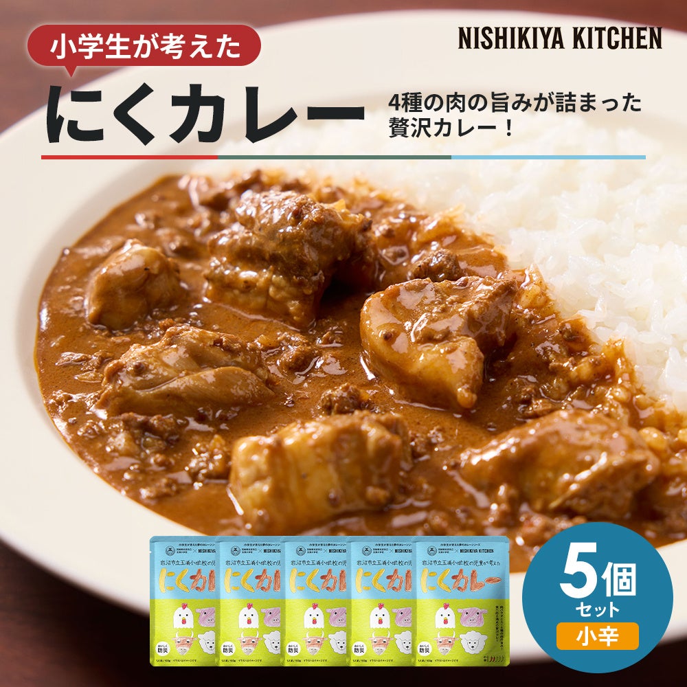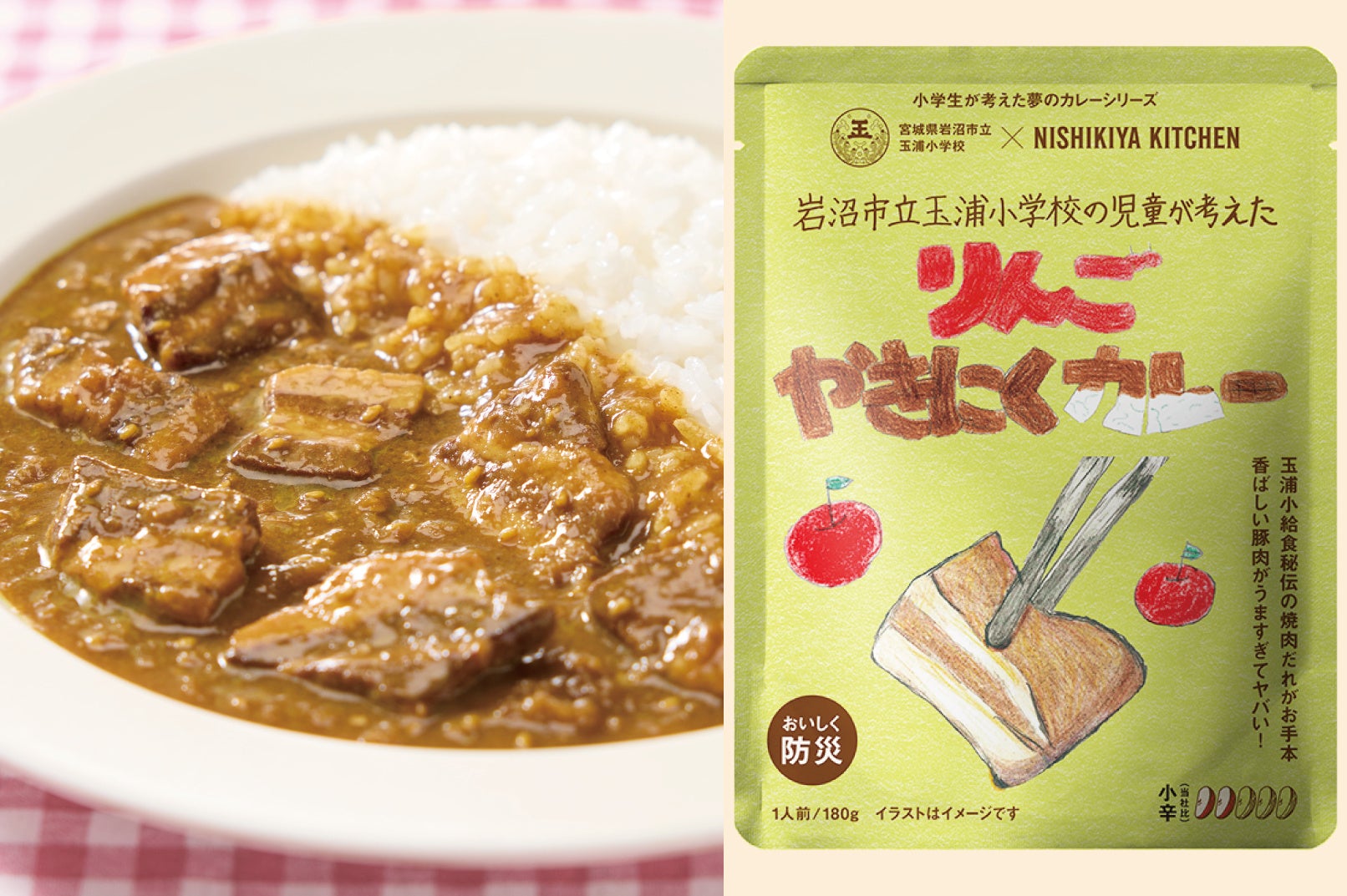 「世界の料理を『カンタン』に。」をコンセプトに掲げ、レトルトカレーを中心に約120種類のレトルト食品を販売する専門店NISHIKIYA KITCHEN(ニシキヤキッチン)(株式会社にしき食品 本社:宮城県岩沼市、代表取締役社長:菊池洋一)は、東日本大震災から15年にあたり、宮城県岩沼市立玉浦小学校(以下、玉浦小)の児童と一緒に企画開発したレトルトカレー2品「りんごやきにくカレー」と「にくカレー」を2026年2月13日(金)から数量限定で販売します。本プロジェクト(=学校のカレープロジェクト)は、「子どもたちの夢をカタチにする体験を通じて、創造力を育み食育へつなげること」を目的として2023年よりスタートし、3年目となる今回は、初の地元である宮城県岩沼市の小学校と取り組みました。
