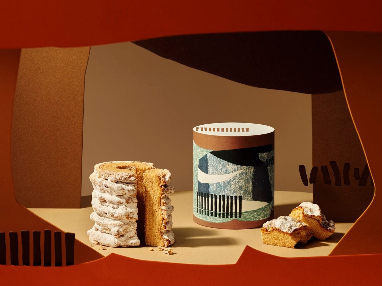 ザクザクとふんわりを楽しめる新食感のバームクーヘン。濃厚でコクのある冬の放牧牛乳を使ったしっとりバームクーヘンに、マカロン生地をかけて二度焼きし、木肌のように仕上げました。ふんわり、サクッとを同時に楽しめる新食感のマカロンバームクーヘンです。